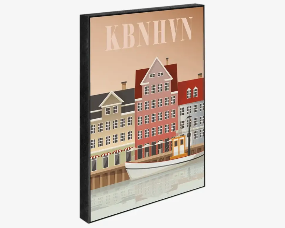 Galleriklods med motiv af Nyhavn i København.Fin galleriklods til ophæng eller som stående dekoration. Galleriklodsen er lavet af en 1,6cm tyk MDF-blok med et mat lakeret kort. Til montering og ophæng på væg har galleriklodsen et 1,4cm hul, til enten en skrue eller et søm.