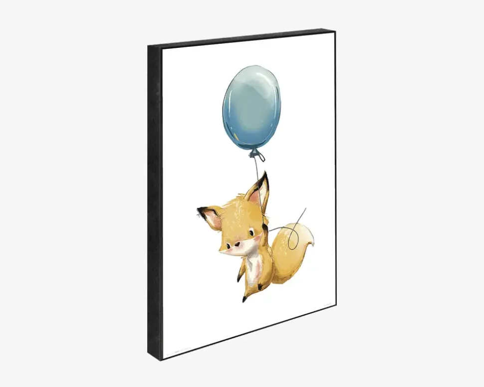 Galleriklods med Ræv på eventyr. Indret børneværelset med vores fine klodser med børnemotiv, for at skabe et personlig børneværelse.Fin galleriklods til ophæng eller som stående dekoration. Galleriklodsen er lavet af en 1,6cm tyk MDF-blok med et mat lakeret kort. Til montering og ophæng på væg har galleriklodsen et 1,4cm hul, til enten en skrue eller et søm.