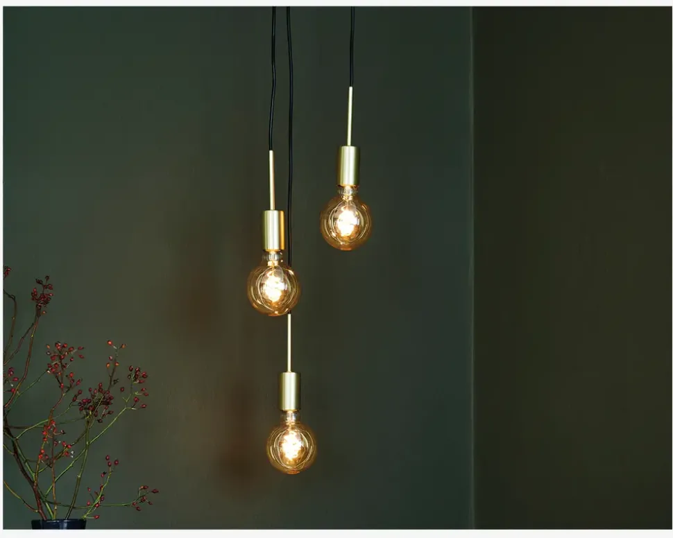 Paco lampeserien består af en serie lamper i enkelt design i sort og messing. Klyngependlen er god i et hjørne, til at skabe en hyggelig belysning. Skab dit eget præg på lampen ved at bruge dekorationspærer.• Mål i cm: H.17,3 x Ø.22,6• Farve: Messing• Materiale: Metal• Fatningstype: E27 max 40W• Ekskl. lyskilder (3 stk.)• IP-kode: IP20• Ledningslænge: 200 cm