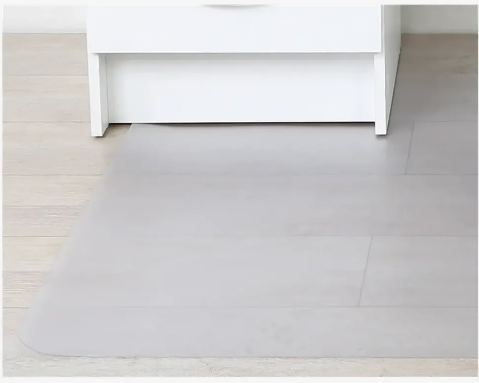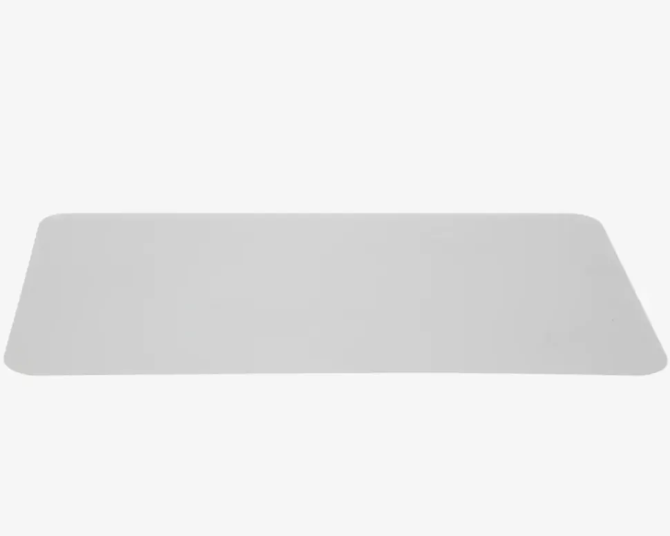 Stoleunderlag til kontorstole. Perfekt til at skåne gulvet under skrivebordet. Er ru på den ene side for at få køreunderlaget til at ligge bedre fast på trægulvet. Kan også bruges på tyndere gulvtæpper for at få kontorstolen til at køre bedre. • Transparent• Tykkelse: 1,6 mm• Glat på den ene side og lidt ru på den anden• Mål i cm. B.91 x L.122