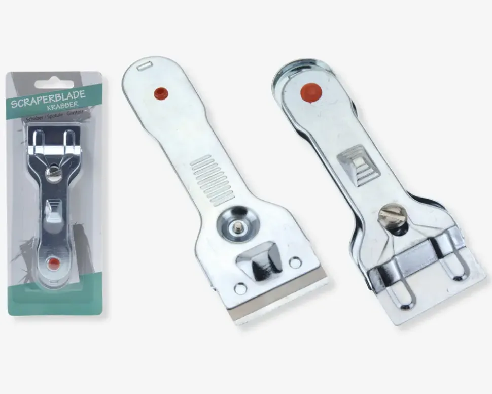 Komfurskraber med en længde på 14 cm, ideel til rengøring af keramiske kogeplader og glasoverflader. Skraberen fjerner nemt fastbrændte madrester uden at ridse, og er et praktisk redskab til at holde komfuret pænt og rent.
