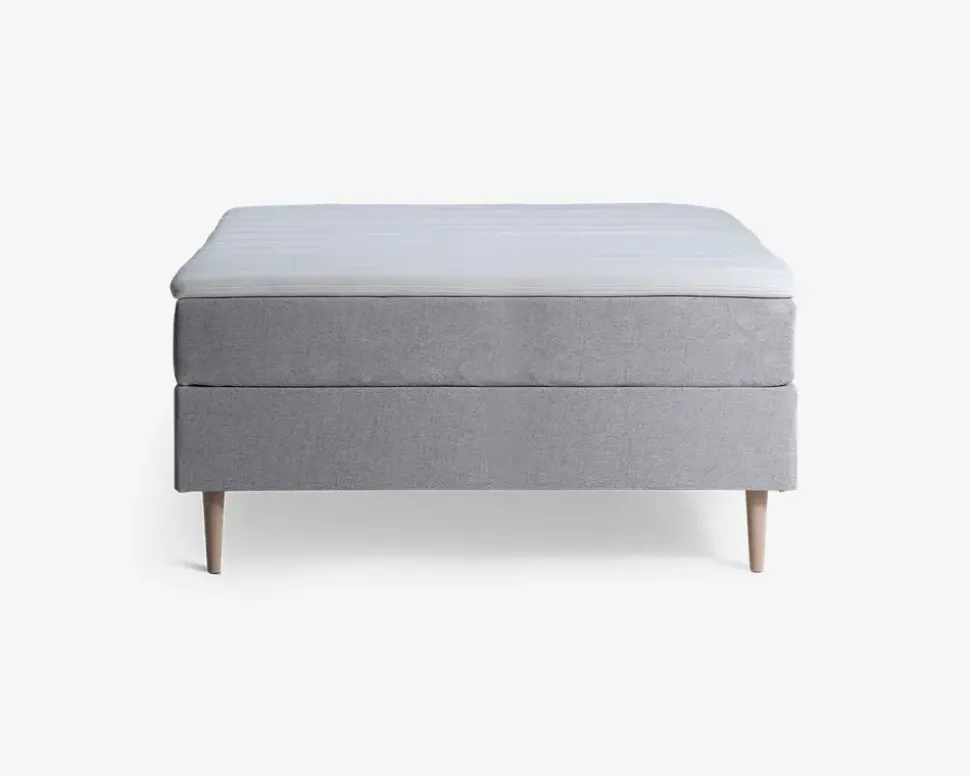 Komplet kontinentalseng i 140 x 200 cm, inkl. gavl, topmadras og bensæt. Sengen består af 2 sæt ben i natur træ, 1 base i spånplade, 1 stk. 5-zonet springmadras med 220 posefjedre pr m², 1 betræk til springmadras i 140×200 cm, 1 stor topmadras i 30 mm polyetherskum, med aftageligt betræk som kan vaskes ved 30°. En komplet seng klar til brug, hvor du har mulighed for at tilkøbe en hovedgavl i matchende stof. Sengen vil med den grå farve passe ind i mange danske hjem, og de neutrale farve, gør det nemt at få den trukket ind i netop din stil.De 220 posefjedre pr. m² er inddelt i 5 komfortzoner, og de vil give dig en rolig søvn, og reducerer dit behov for at vende dig, så du vil vågne frisk og veludhvilet hver morgen. For at holde madrassen frisk og sikre at I hele tiden får optimal støtte til kroppen, anbefaler vi at I med jævne mellemrum vender selve springmadrasserne, på den måde vil I både opleve en bedre støtte, og holdbarheden vil forlænges markant. Det samme gør sig gældende for topmadrassen.Sengen kræver ingen vedligeholdelse, og holdes ren med en støvsuger, samt en klud vredet op i rent vand. Betrækket på topmadrassen kan afmonteres og vaskes i vaskemaskinen ved 30°. Efter vask bør betrækket monteres igen mens det stadig er en smule fugtigt, på den måde vil det strække sig igen.• Inkl. bensæt, base, 1 springmadras, betræk til springmadras samt 1 topmadras• Medium hårdhed• 5-zonet springmadras med 220 posefjedre pr. m²• Madrasmål i cm.: 140 x 200• Totalmål i cm.: H. 113 x B. 144 x L. 210• Leveres usamlet