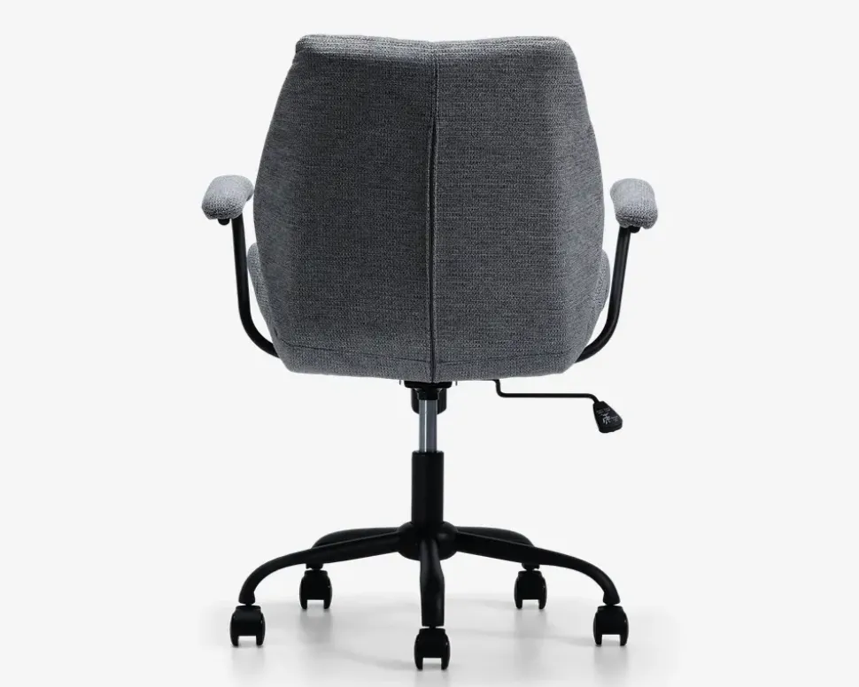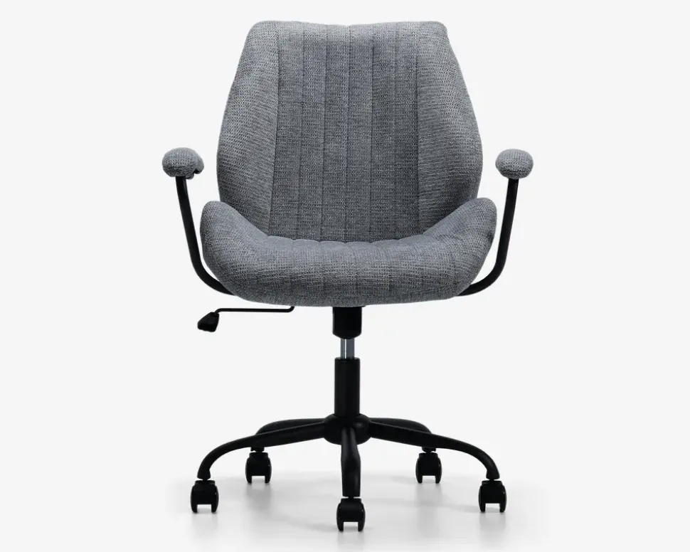 Flot kontorstol med armlæn og med vippefunktion, hvilket giver en rigtig god siddekomfort. Stolen er monteret med blødt og slidstærkt møbelstof i moderigtige farver, som passer til en del af vores sofaer. Dette giver muligheden for at få en bedre sammenhængende dagligstue med stol og sofa i samme farver. Mekanismen er gasautomatik for højderegulering og vippefunktion. Kontorstolen har en flot sortlakeret metalfod og gummihjul, så de ridser trægulvet mindre. Fås i beige og i grå.• Kontorstol med armlæn• Blødt og slidstærkt møbelstof stof på ryg• Gasautomatik for højderegulering og med vippefunktion• Sortlakeret metalfod og gummihjul• Højderegulerbar fra 44 – 50 cm• Leveres usamlet men samles let• Mål i cm. B.69 x D.68 x H.84/90