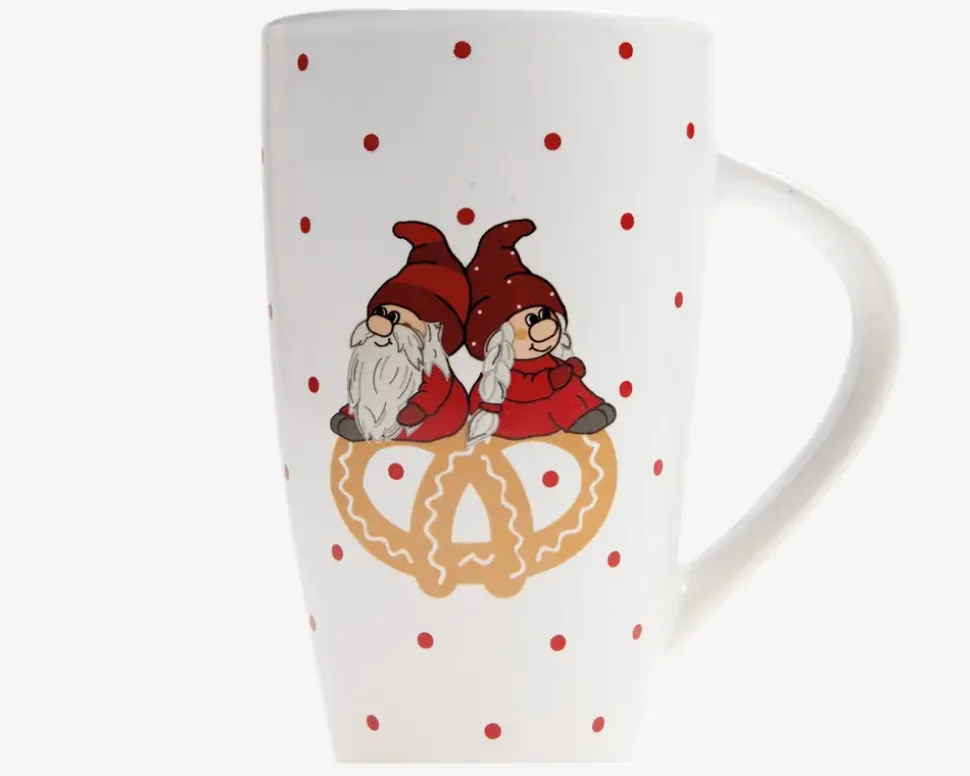 Få varmen i de kolde tider, med dette dejlig store julekrus med nisser på, med masser af plads til f.eks. varm kakao og skumfiduser. • Mål i cm: H.15,3