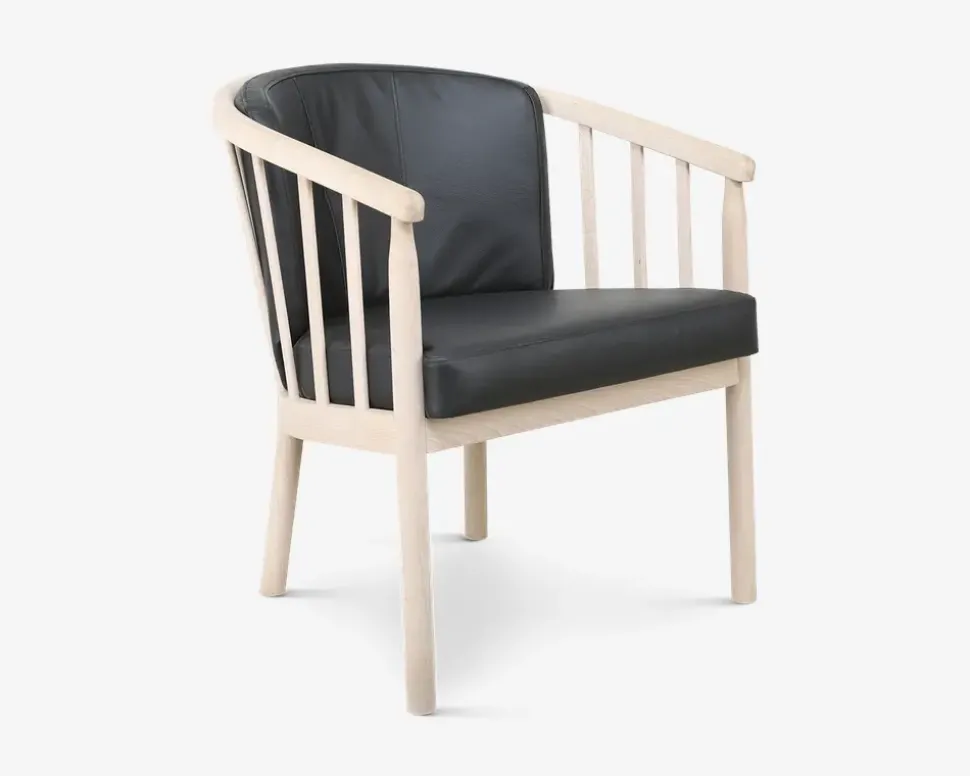 Lækker armstol i massiv ubehandlet bøg. Puderne er monteret med sort okselæder. Stolen er let og elegant og passer perfekt til tremmestuen, varenummer 94788, 94789, da det er i samme træsort og samme farve læder. Rigtig god siddekomfort. • Massiv ubehandlet bøg• Sort okselæder• Let og elegant• Rigtig god siddekomfort• Mål i cm: B.64 x D.70 x H.45/77