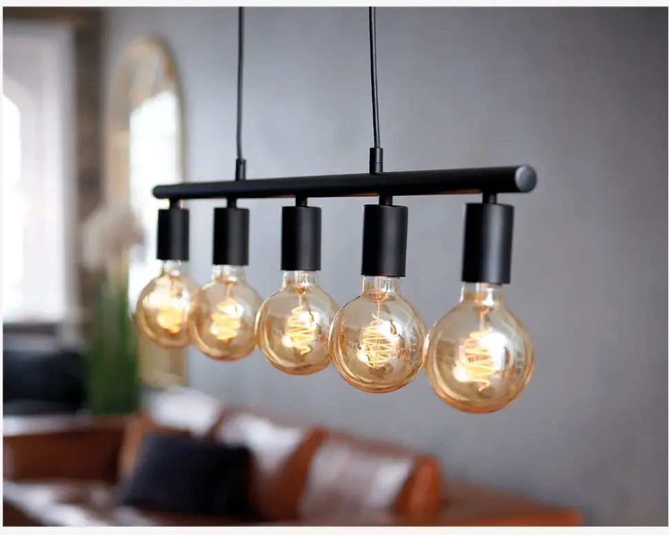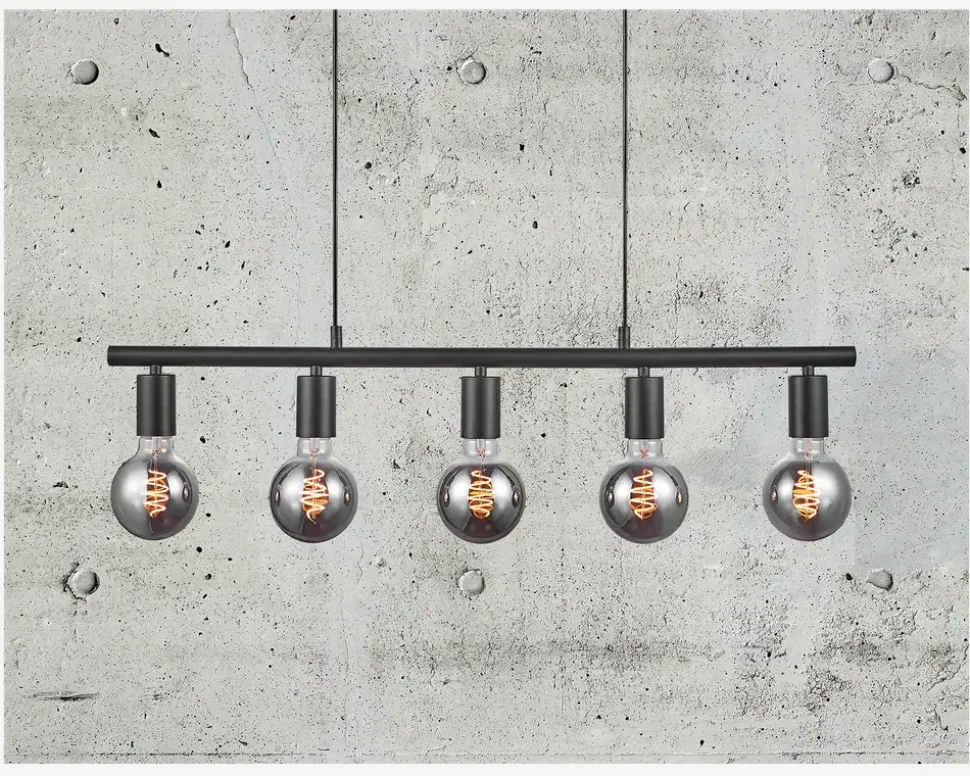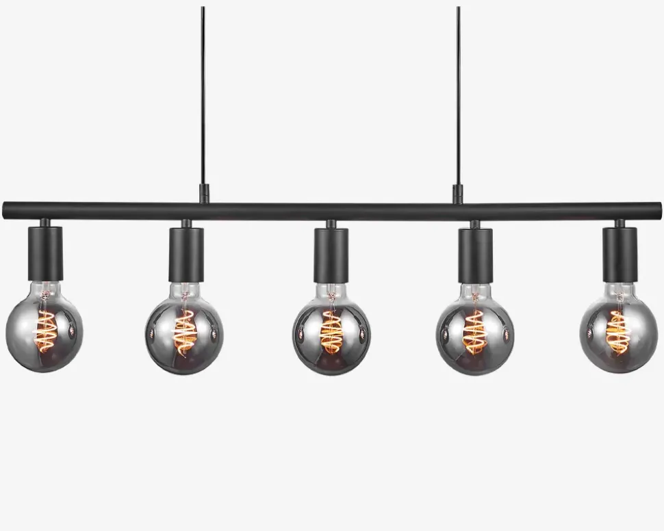Enkel langbordspendel, der kan styles med dekorationspærer, så du kan give den et personligt præg. Paco serien består også af enkle pendler, samt klyngependler. Denne pendel er god over et langt spisebord eller over køkkenbordet, da den vil fordele lyset godt.• Mål i cm: H.11,5 x L.80• Farve: sort• Materiale: Metal• Fatningstype: E27 max 25W• Ekskl. lyskilder (5 stk.)• IP-kode: IP20• Ledningslænge: 200 cm