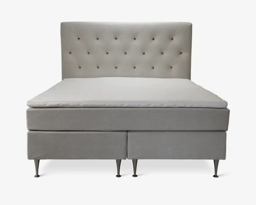 Komplet Continentalseng med madrasmål i 180 x 200 cm. Sengen består af 2 baser med et mini posefjedre indlæg. 1 springmadras med et fjedreindlæg bestående af multiposefjedre, til springmadrassen leveres et betræk. Topmadrassen består af en 40 mm latex kerne quiltet med uld på den ene side og fibervat på den anden side, således har du en sommer og vinterside på topmadrassen, som vil være med til at øge komforten. Topmadrassen har et aftageligt betræk, som kan vaskes ved 30°, men vi anbefaler at du tilkøber en skånemadras som kan vaskes i maskinen ved 60°. Sengen leveres inkl. hovedgavl i grå , samt 2 sæt ben i sølvfarvet metal.Multiposefjedrerne i springmadrassen er inddelt i 7 komfortzoner, som sammen med topmadrassen vil omfavne din krop, og hjælpe dig til at opnå den dybe rolige søvn, som igen vil hjælpe dig til at vågne frisk og veludhvilet hver morgen. Sengen har et flot udseende, og den klassiske grå farve vil stå rigtig flot i mange soveværelser.Sengen kræver som sådan ingen vedligeholdelse, og den daglige rengøring foretages med en støvsuger. Den øverste springmadras samt topmadrassen bør med jævne mellemrum vendes, dette vil både øge levetiden markant, ligesom det vil sikre din krop den bedst mulige støtte i hele madrassens levetid. Betrækket på topmadrassen kan vaskes ved 30° men vi anbefaler at du benytter en skånemadras oven på topmadrassen, denne kan vaskes ved 60°, og tåler at blive vasket mange gange. Derudover anbefaler vi at topmadrassen luftes udendørs nogle gange om året, dette afhjælpe eventuelle husstøvmider.• Giver en fantastisk liggekomfort• Nederste lag 225 mini posefjedre pr. m²• Springmadras med 383 multiposefjedre pr. m²• 7 komfortzoner• Topmadras med 40 mm latex• Sommer og vinterside på topmadras• Inkl. gavl og ben• Mål i cm. H. 151x B. 184 x L. 214• Madrasmål i cm. B. x L.: 180 x200• Liggehøjde: 70 cm.• Leveres usamlet