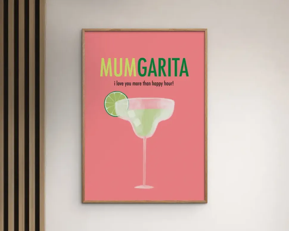Mum-Graita er et dekorativt billede der er sjovt og udtryksfuldt. Med sit moderne udtryk tilfører det liv og karakter til rummet. Perfekt som en del af indretningen for eksempel som en del af billedvægen. Kan også benyttes som et dekorativt kort.