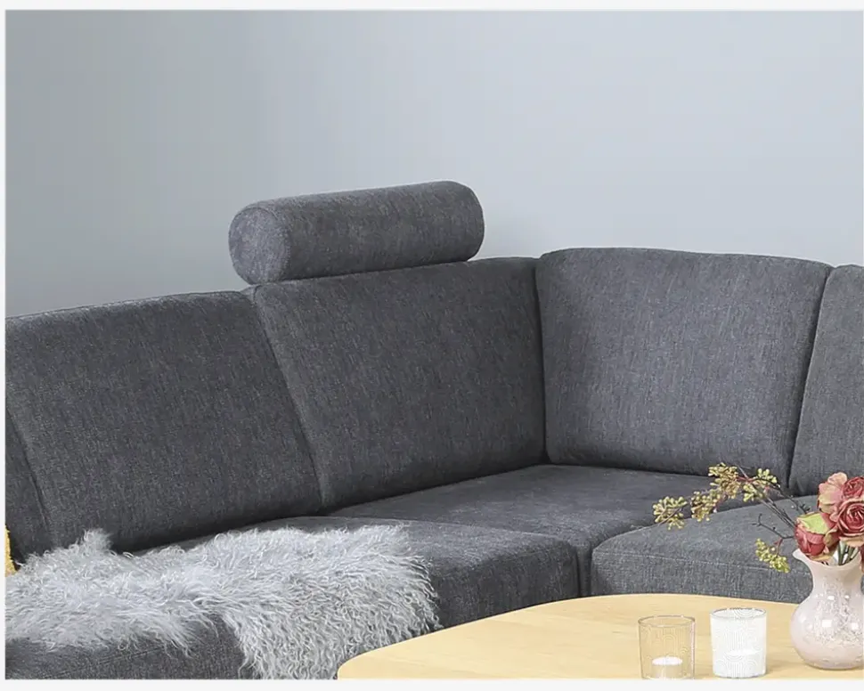 Sienna – design selv sofaserieSienna sofaserien er flotte og stilfulde sofaer med dejligt brede armlæn, samt skrå ben som giver sofaerne et flot og let udtryk. Her kan du vælge imellem 12 forskellige opstillinger samt over 100 forskellige stofbetræk eller i læder. Der kan vælges imellem sorte ben og eg natur ben. Så får du lige præcis den sofa, der passer til din dagligstue.Kvaliteten behøver du ikke tænke på – alle sædehynder i denne serie er lavet i en sandwich konstruktion bestående af formstabilt polyether skum og koldskum. Så ud over at få en sofa der passer lige til dine ønsker, så får du også en sofa i en rigtig god kvalitet, som holder de næste mange år. Her er vist en nakkepude som lagerføres og derfor sælges til en fast lav pris. Kan ikke kombineres med andre tilbud. Passer til sofa med varenummer 32472.• Design selv serie• Formstabilt polyether og koldskum i sæder• Faste ryghynder• Massiv træramme med nozagfjedre• Rigtig lækker siddekomfort• Mål i cm. B. 55