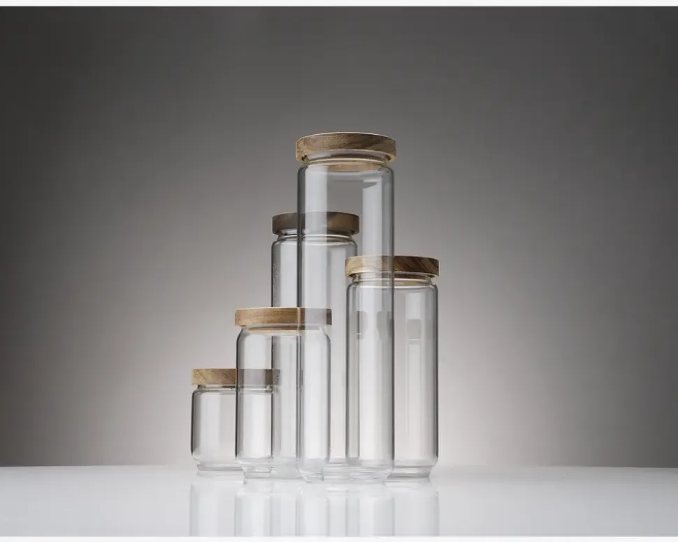 Elegant og funktionel madopbevaringsbøtte lavet i glas med et smukt trælåg. Perfekt til opbevaring af madvarer, da det tætsluttende låg hjælper med at bevare friskheden. Ideel til tørvarer. Bemærk at glas beholderen kan gå i opvaskeren mens at låget ikke gør.