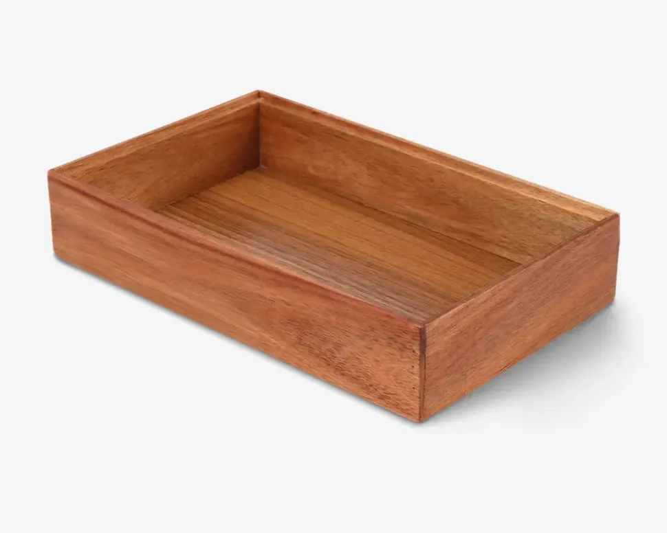 Hold styr på småtingene med denne elegante organiserings bakke i naturligt akacietræ. Perfekt til at organisere bestik, krydderier, smykker, kontorartikler eller badeværelsesprodukter, samtidig med at den tilføjer et varmt og naturligt udtryk til din indretning.