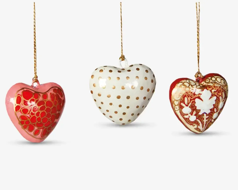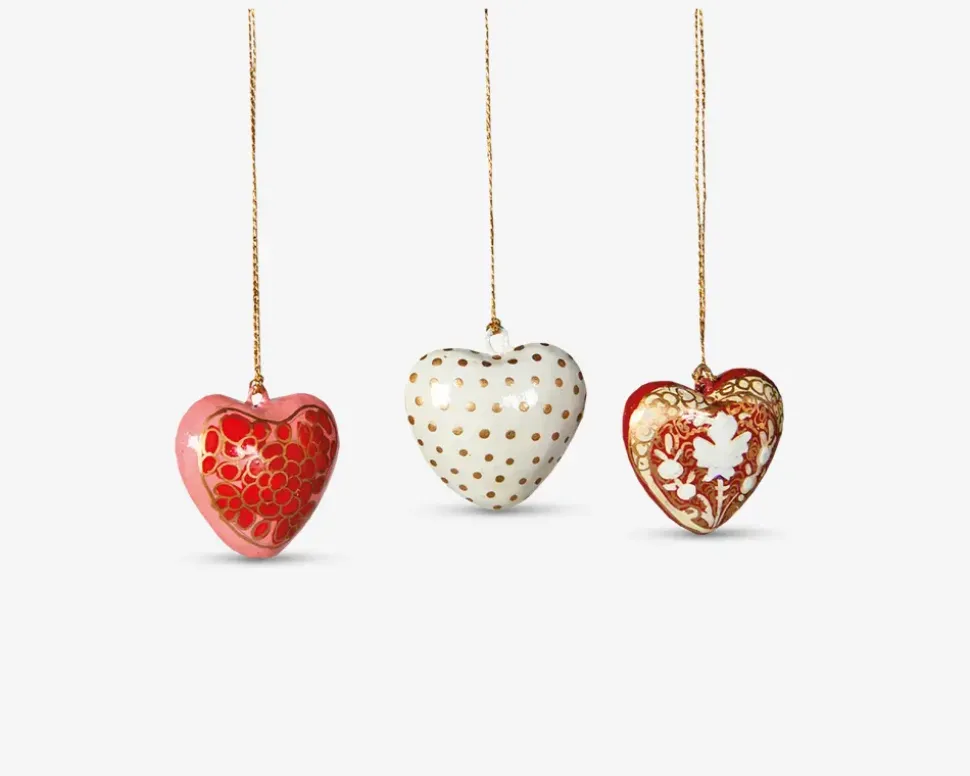 Hjerte med mønster der kan bruges som julekugler. Med en højde på 5 cm er de små figurer perfekte til juletræet eller som pynt på grene. Bemærk at de kommer assorteret, købes enkeltvis og at der ikke kan vælges design ved køb i webshoppen.