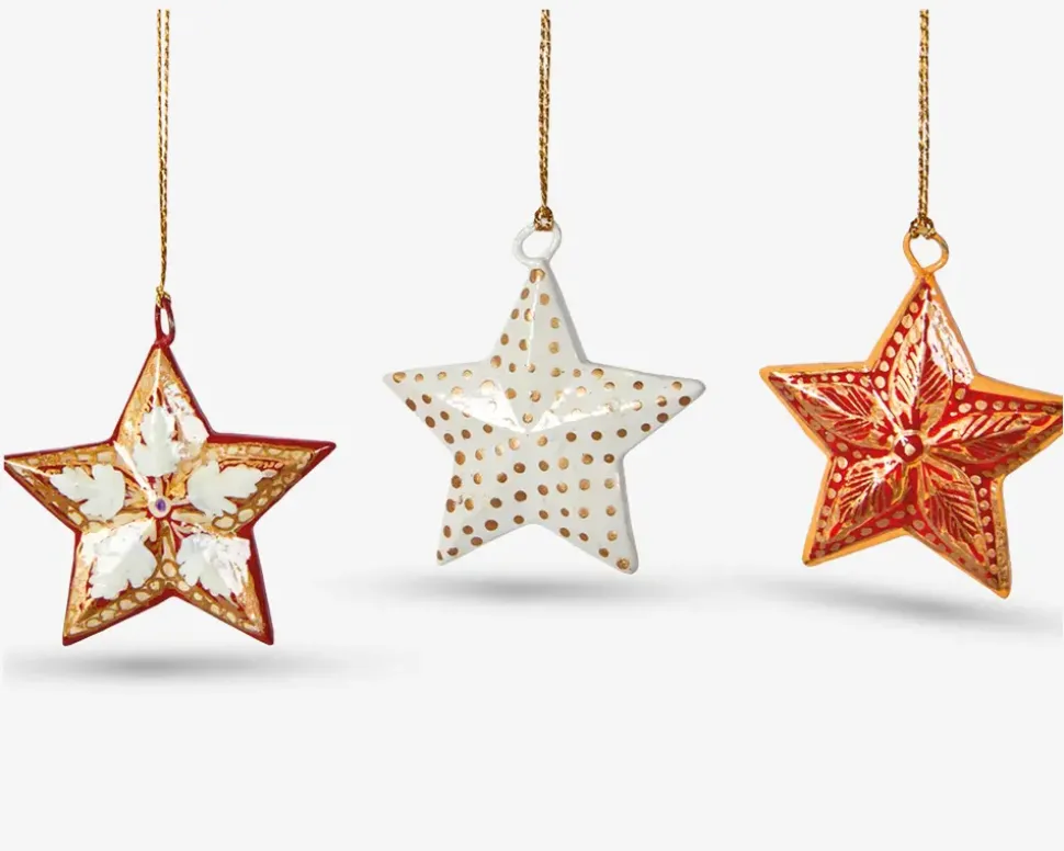 Stjerne i træ med mønster der kan bruges som julekugler. Med en højde på 5 cm er de små figurer perfekte til juletræet eller som pynt på grene. Bemærk at de kommer assorteret, købes enkeltvis og at der ikke kan vælges design ved køb i webshoppen.