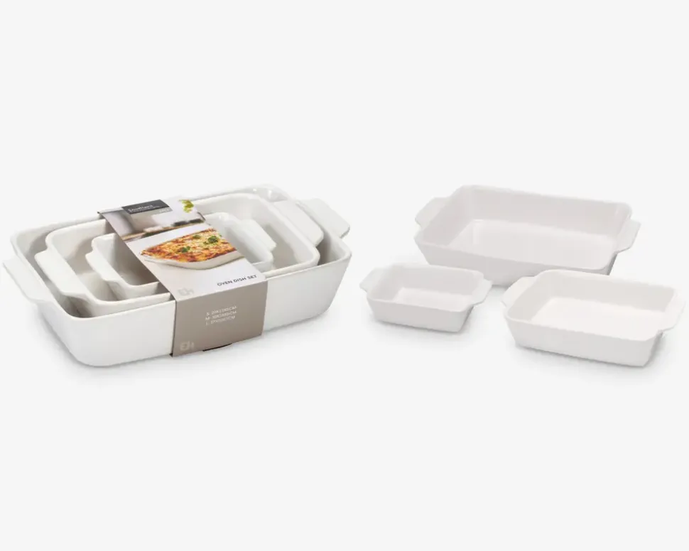 Ovnfast fade der kommer i et sæt med 3 stk. i hvid. Fadene kombinerer funktionalitet og stilrent design, og de kan bruges direkte i ovnen til bagning eller servering. Perfekte til både hverdagsbrug og festlige lejligheder. Fadene kommer i følgende størrelser: 20x13x5 cm, 30x18x6 cm & 37x22x7 cm.
