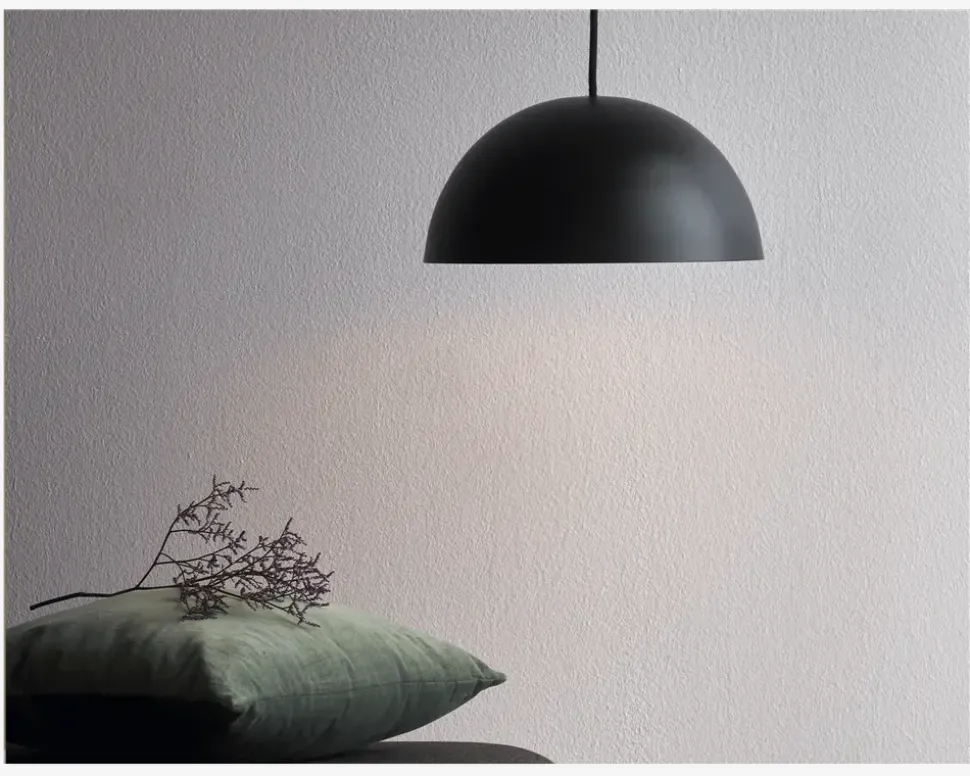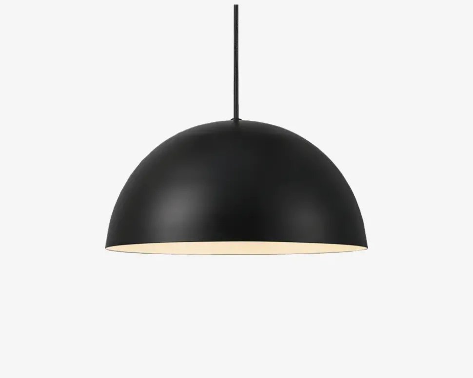 Ellen er et tidsløst og enkelt nordisk design. Det flotte runde kuppelformede look står flot i kontrast til det lette stel og giver hjemmet et bredt og hyggeligt lysfelt. Anvend eksempelvis lampen over spisebordet eller som hyggebelysning i hjørnet over sofaen.Fuldend din indretning med andre lamper fra samme serie.Fås i flere farver.• Mål i cm: Ø.30• Materiale: Metal• Farve: Sort• Fatningstype: E27 maks 40W• Ledningslængde: 200cm stofledning• Lyskilde: Ekskl. Pære• IP-Kode: IP20