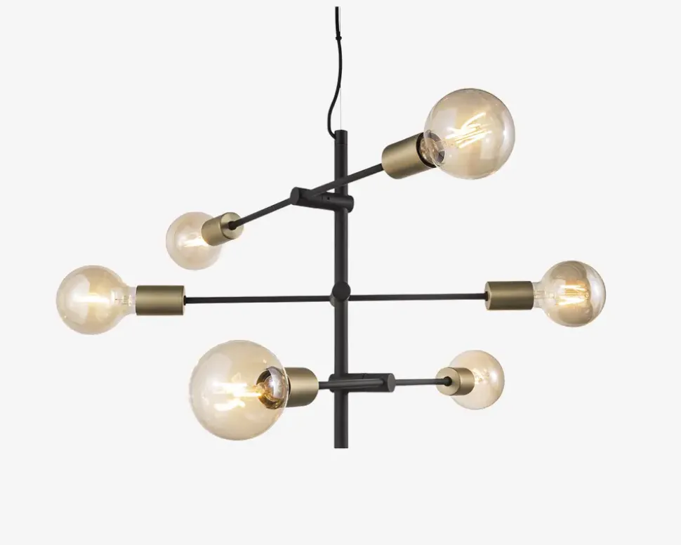 Josefine er på en og samme tid en minimalistisk og elegant lampe, som samtidig er dekorativ lyskilde. De strigente rør bidrager til et industrielt udtryk med associationer til en rå og moderne indretning. Anvend evt. dekorationspærer og skab dit eget personlige præg.• Mål: H.79 x Ø.55 cm• Materiale: Metal• Farve: Sort/Messing• Fatningstype: E27 maks 28W (6stk)• Ledningslængde: 200cm stofledning• Lyskilde: Ekskl. Pære• IP-Kode: IP20