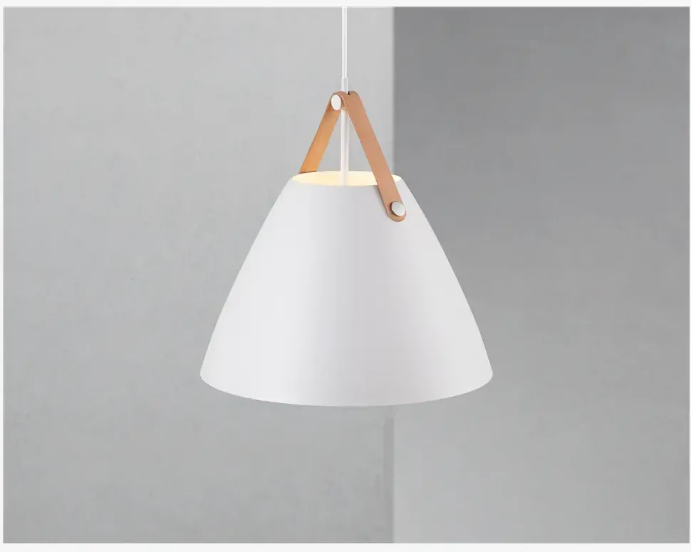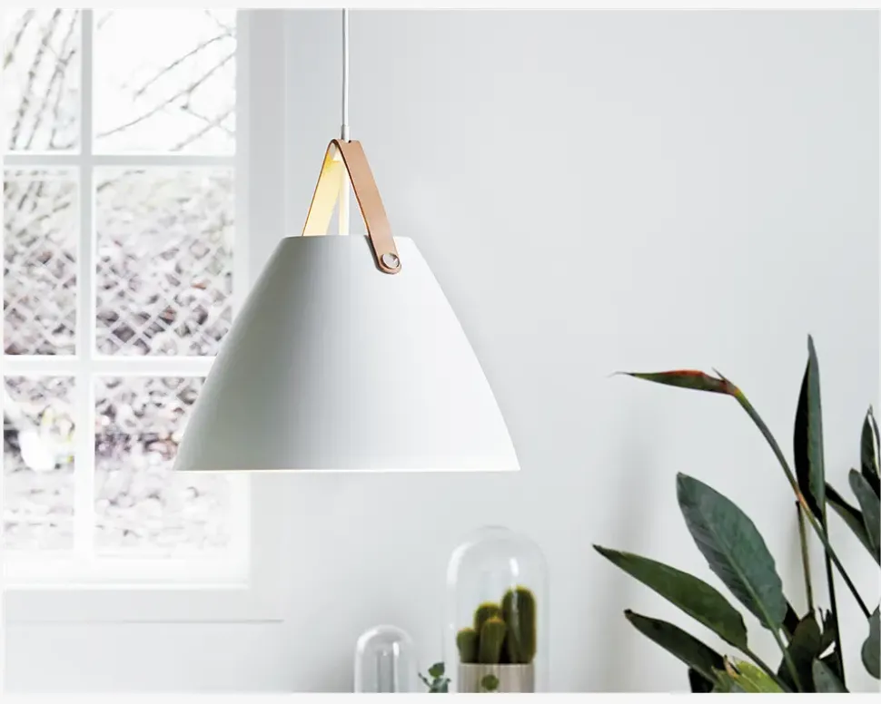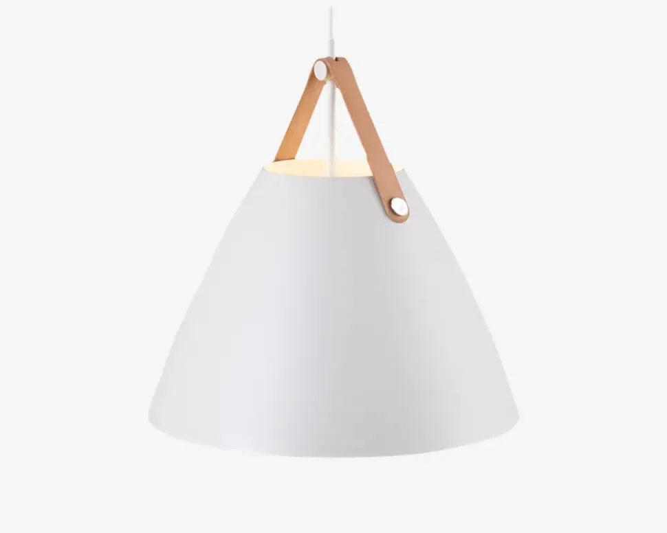 Metal og læder går godt i spænd med den lette nordiske stil. Med STRAP virker det indlysende – lige så indlysende som at en læderrem har lagt navn til nordisk lampedesign. Den smalle og elegante læderrem giver STRAP et både varmt og råt udtryk, der balancerer mellem det klassiske og det industrielle. Der medfølger to læderremme i henholdsvis brun og sort, så det er op til dig at give STRAP det endelige look. Navnet på STRAP spiller i høj grad sammen med lampens udseende. Pendlen er hængt op i en læderstrop, som du oven i købet selv kan skifte ud med en sort eller naturfarvet version. På den måde kan du selv være med til at bestemme lampens udseende. Kombinationen af læder og metal eller glas gør samtidig, at lampen visuelt spiller sammen med en moderne indretning, hvor materiale miks er en af tidens største trends.• Mål i cm: Ø.36 x H.37• Farve: Hvid• Materiale: Metal/Læder• Fatningstype: E27. Max 40W• Ekskl. Lyskilde • IP-kode: IP20• Ledningslængde 300 cm