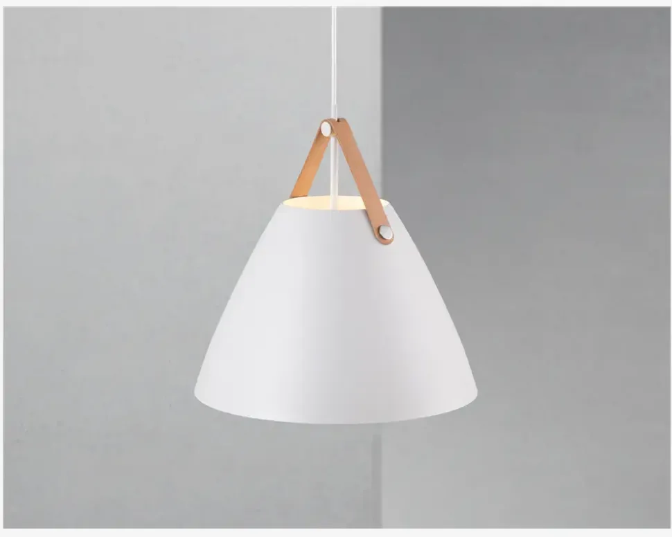 Metal og læder går godt i spænd med den lette nordiske stil. Med STRAP virker det indlysende – lige så indlysende som at en læderrem har lagt navn til nordisk lampedesign. Den smalle og elegante læderrem giver STRAP et både varmt og råt udtryk, der balancerer mellem det klassiske og det industrielle. Der medfølger to læderremme i forskellige farver, så det er op til dig at give STRAP det endelige look.Navnet på STRAP spiller i høj grad sammen med lampens udseende. Pendlen er hængt op i en læderstrop, som du oven i købet selv kan skifte ud med en sort eller naturfarvet version. På den måde kan du selv være med til at bestemme lampens udseende. Kombinationen af læder og metal eller glas gør samtidig, at lampen visuelt spiller sammen med en moderne indretning, hvor materiale miks er en af tidens største trends.• Mål i cm: Ø.16,5 x H.17 • Farve: Hvid• Materiale: Metal/Læder• Fatningstype: GU10 Max 40W• Ekskl. Lyskilde• IP-kode: IP20• Ledningslængde 300 cm