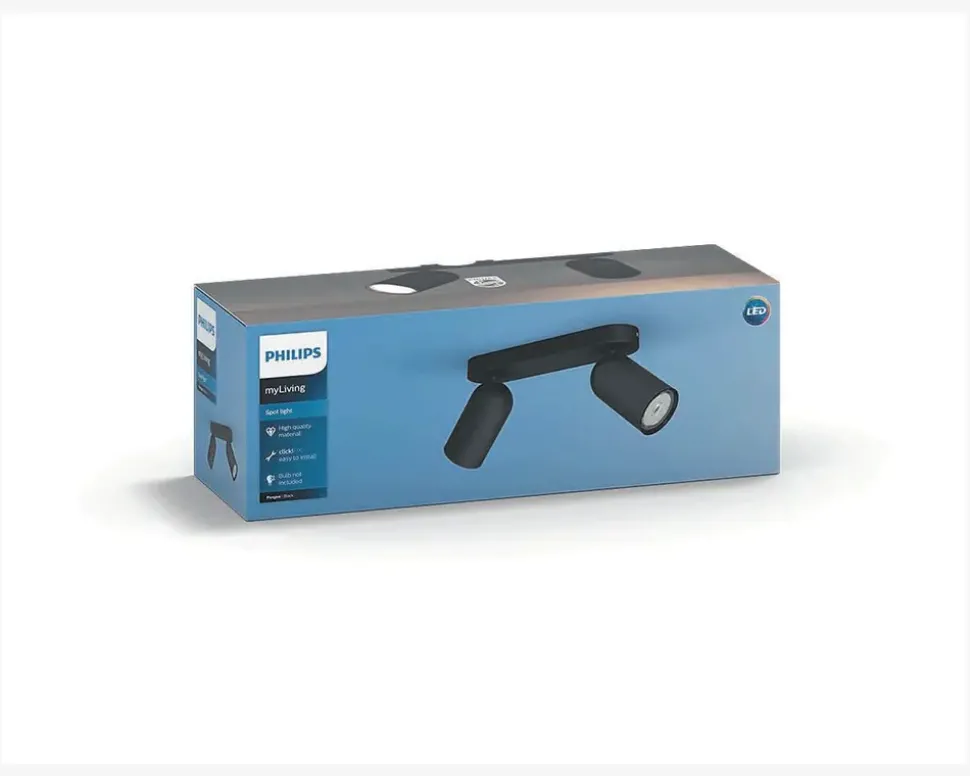 Pongee er en elegant spot med målrettet lys af høj kvalitet. Pongee passer til nutidens trend og livsstil. Lampen kan anvendes i gangen, køkkenet, værelset eller i stuen.•Mål i cm: H.8,2 x B.12,2 x L.24•Farve: Sort•Materiale: Metal•Fatningstype: 2 x GU10 max 5,5W•Ekskl. Lyskilde (Bemærk kan kun anvendes LED Lyskilde)•IP20