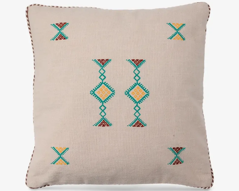 Dekorativ pyntepude med broderi, der tilføjer hygge til din indretning. Perfekt til sofaen, lænestolen eller sengen, hvor den både kan fungere som blikfang og støtte. Er lavet i bomuld og måler 45×45 cm.