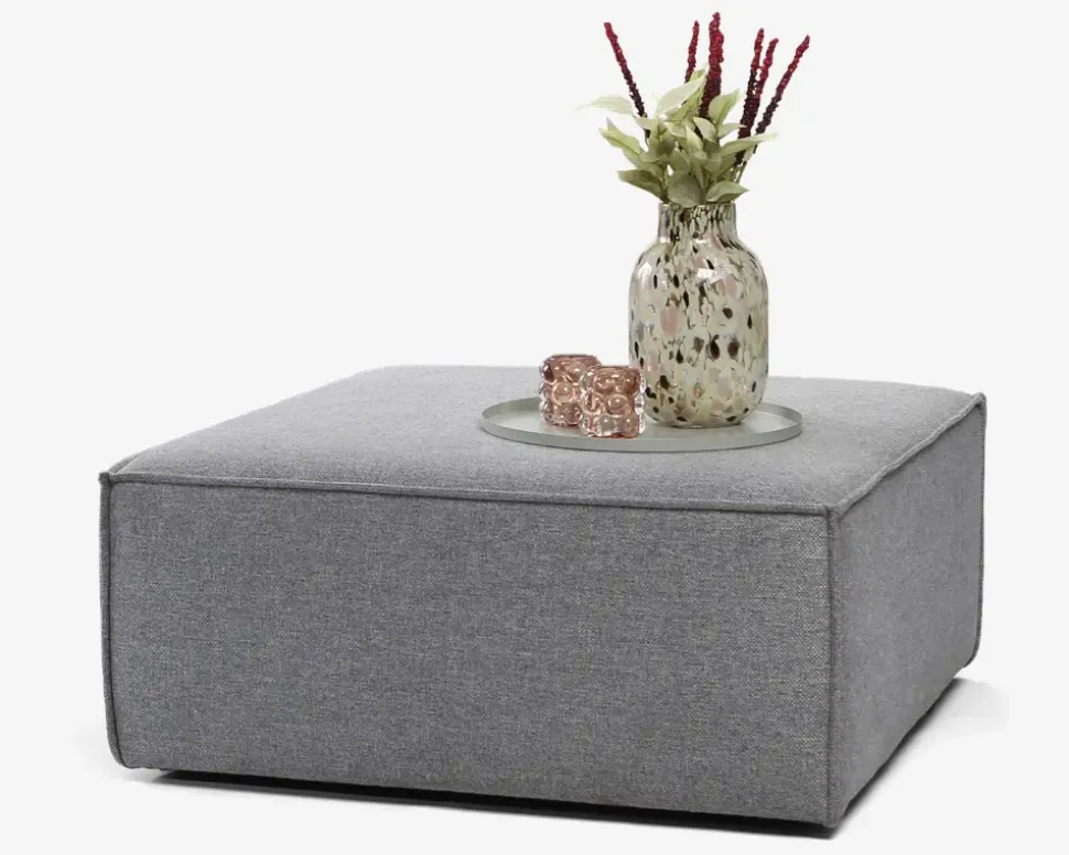 Flot designet byggesofa i en exceptionel god kvalitet. Alle moduler er betrukket med stof hele vejen rundt og beslagene til at sammensætte modulerne er skjulte, så alle moduler kan stå enkeltvis. Vælg imellem 12 forskellige moduler, som kan bestilles i 18 forskellige typer stofbetræk. Der kan også vælges imellem 3 forskellige typer indlæg i sæderne. “Comfort” skum, Koldskum eller den eksklusive med posefjedre. Så kan man opnå den helt perfekte siddekomfort. Lagerføres i den grå farve som er vist her, med “Comfort” skum i sædet.Her er vist puff, som kan stå frit eller bygges sammen med andre moduler.Klik for at se alle mulighederne og priserne• Flot designet byggesofa• “Comfort” skum i både sæde og ryg• Fantastisk siddekomfort og lang holdbarhed.• Med stof hele vejen rundt• Skjulte beslag til sammensætning• Lagerføres i grå, kan bestilles i flere farver• Mål i cm. L. 93 x D.93 x H.43