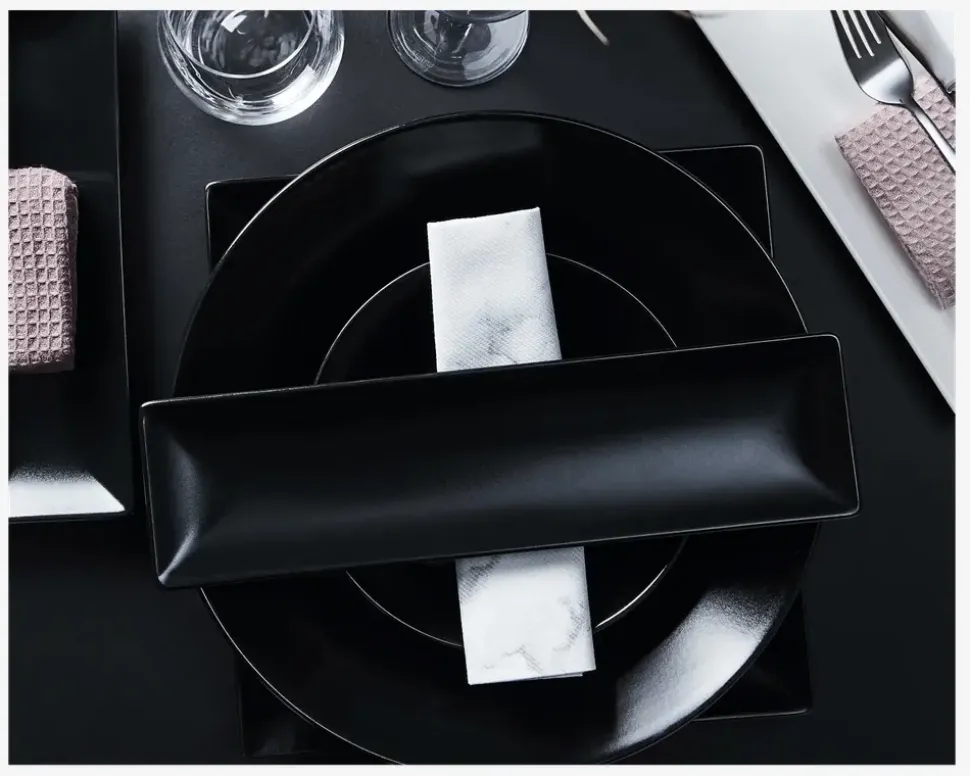 Markant design i stærk stentøjskvalitet. Quadro seriens produkter er brændt ved ca. 1.200 grader som giver en stærk kvalitet med god holdbarhed. Den ekstra stærke glasur giver en forbedret overflade samt et flot ensartet look og finish til produktet. Tåler ovn, mikroovn og frys.Dæk op med Quadro når borddækningen skal være ekstra markant til f.eks. sushi, tapas og lignende.