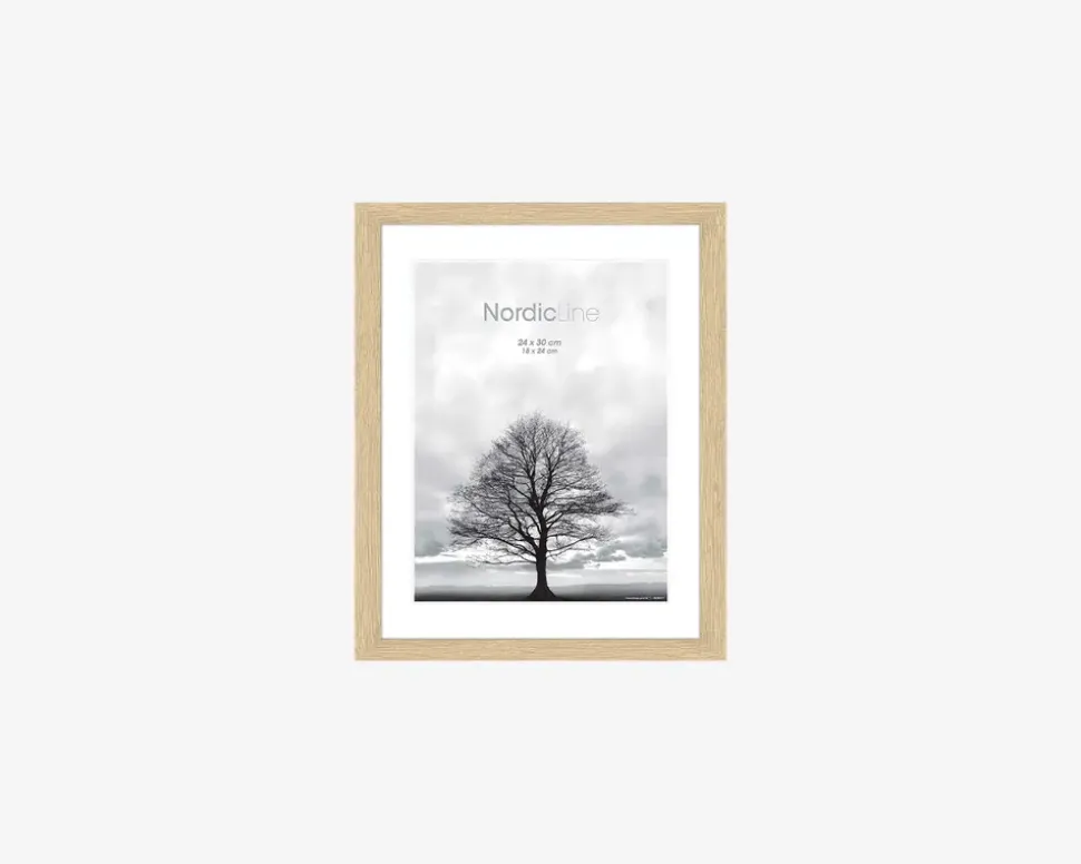Flotte klassiske rammer i minimalistisk design, som er nemme at inkorporere i alle stilarter, da de har et simpelt design. Rammerne kan evt. kombineres med andre rammer fra vores sortiment, for at skabe blikfang til din kunst.Rammen findes i flere mål, så du kan finde netop den ramme du søger.• Mål i cm: H.30 x B.24 • Farve: Eg• Materiale: Massiv fyrretræ med ege folie/Glas