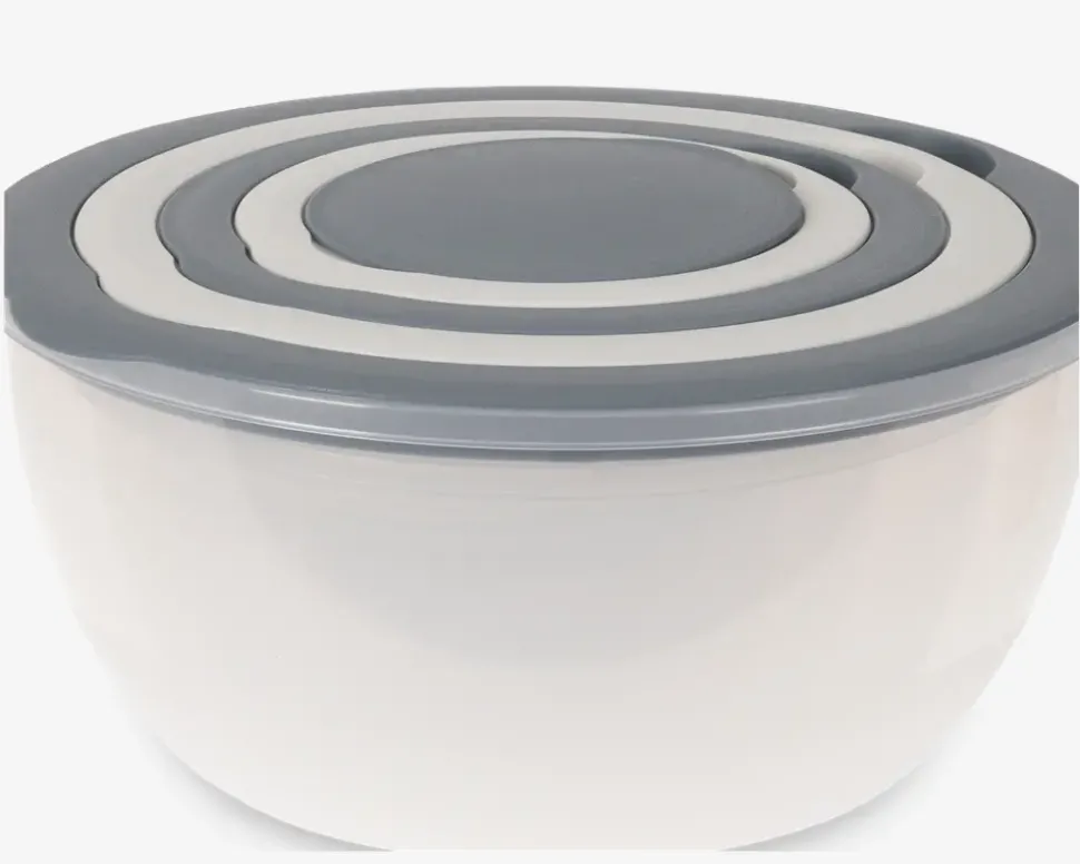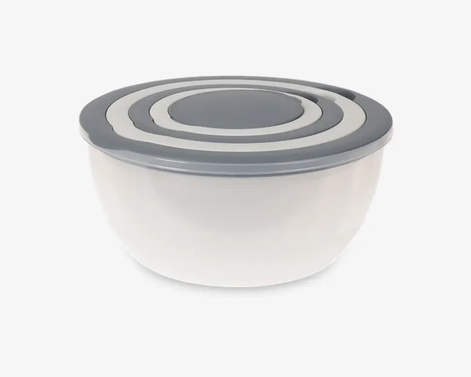 Skåle sæt med 5 stk. De kommer i 5 forskellige størrelser og er dermed praktiske, da de kan sættes oven i hinanden så de fylder mindre. Enkelt design som passer ind i ethvert køkken.Kommer i følgende størrelser: 5L, 3L, 1,8L, 1L og 0,5L. Bemærk at de kommer assorteret og at der ikke kan vælges farve ved køb i webshoppen.