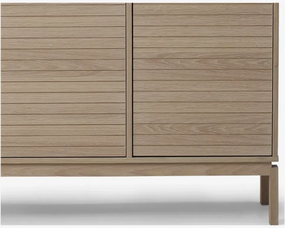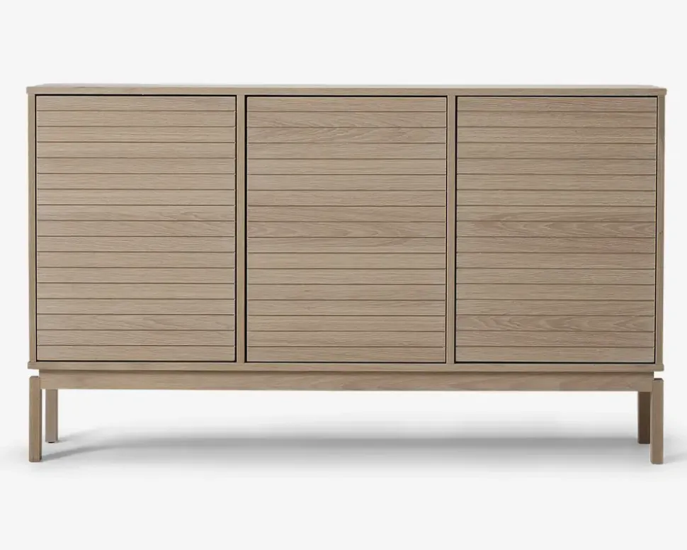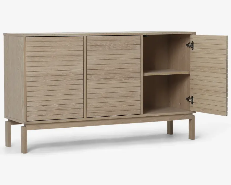 Linley skænken er fremstillet i hvidolieret egetræsfiner, og et massivt stel i hvidolieret eg, med et let udtryk. De flotte lameller på fronten er med til at give skænken et både moderne og klassisk udtryk, og den vil kunne bruges med en lang række af vores spiseborde i hvidolieret eg. Skænkens døre er grebsfrie, og har push to open funktion. Bag hver låge indeholder skænken en hylde, så der er masser af plads til opbevaring.Skænken kræver ikke den store vedligeholdelse, når du modtager den bør du behandle den med en hvid olie, så overfladen er beskyttet maksimalt. Derud over kræver skænken ikke vedligeholdelse, og rengøringen foretages med en klud vredet op i rent vand, spildte væsker bør aftørres med det samme.Skænken leveres usamlet, men samles let med hjælp fra den vedlagte samlevejledning. Vi anbefaler at i er to om at samle og flytte skænken, så der ikke opstår skader på hverken gulv eller skænk.