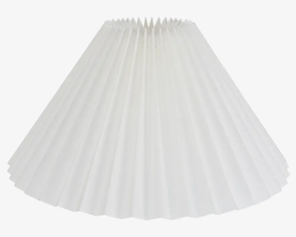 Flot og klassisk plisse lampeskærm af plastik , som passer ind i ethvert hjem, da farven er enkel og neutral. Lampeskærmen sættes på ved at to metalbøjler inde i lampeskærmen klikkes ned over pæren.
