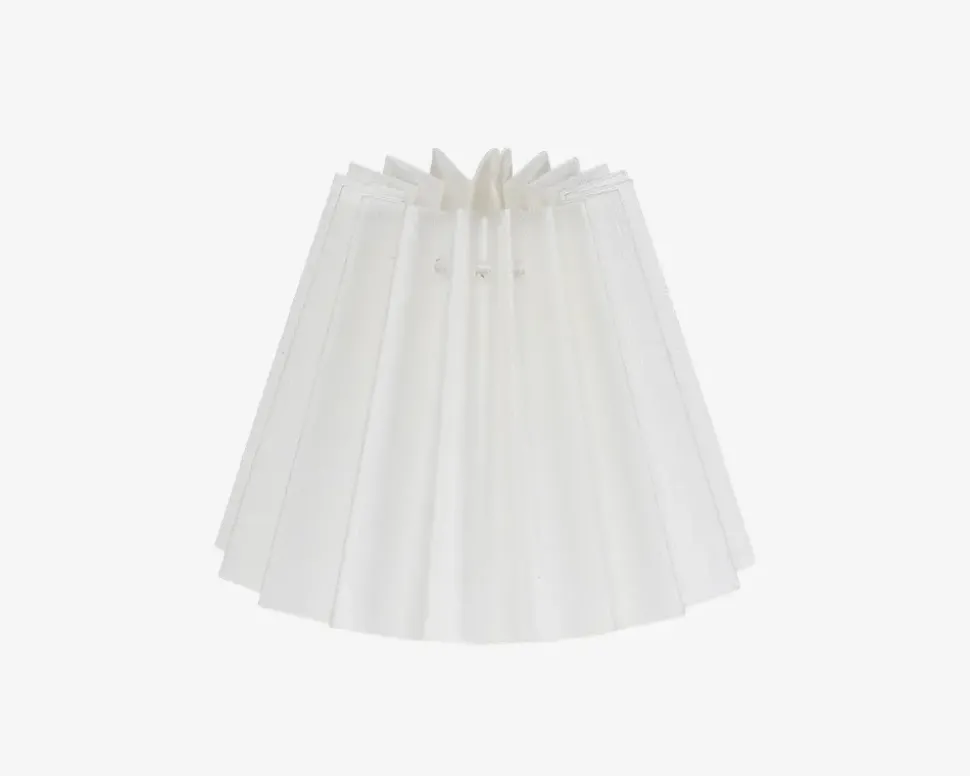 Flot og klassisk plisse lampeskærm af plastik , som passer ind i ethvert hjem, da farven er enkel og neutral. Lampeskærmen er særligt velegnet til en lampefod som kan købes fra sortiment. Lampeskærmen sættes på ved at to metalbøjler inde i lampeskærmen klikkes ned over pæren.