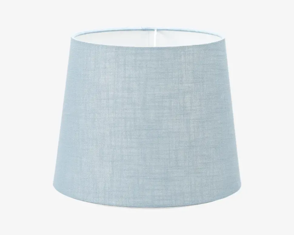 Klassisk lyseblå lampeskærm i bomuld som passer i ethvert hjem, da skærmen er enkel og neutral. Lampeskærmen er blandt andet velegnet til en lampefod, som kan købes fra vores sortiment. Skærmen passer til en E27 fatning. • Mål i cm: Ø.25• Farve: lyseblå• Materiale: bomuld
