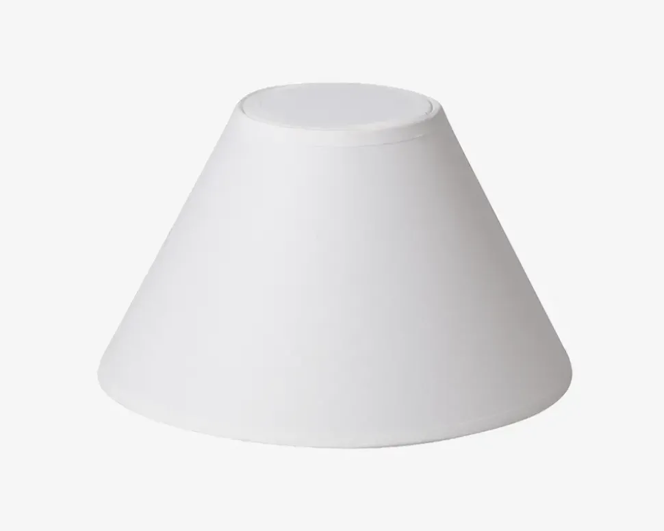 Flot enkelt lampeskærm i hvid med låg. Låget kan tages af, så der kommer mere lys ud i rummet, men kan også sættes på, hvis man ønsker en mere hyggelig belysning i stuen, værelset, kontoret m.m.