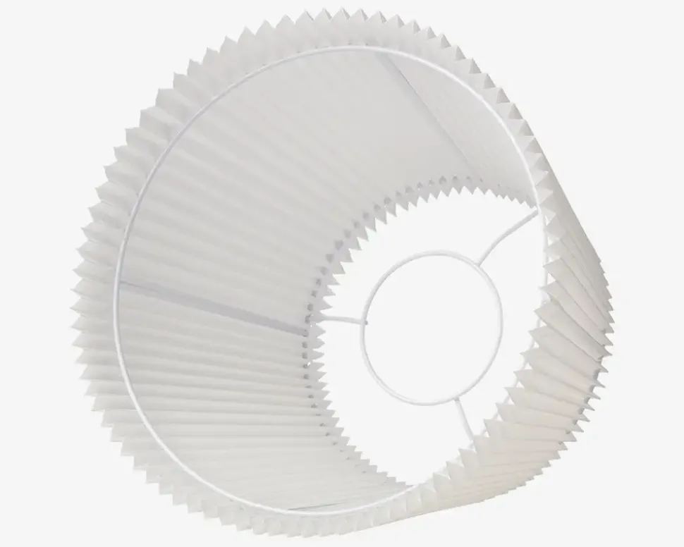 Emma Villa er en lampeskærm i hvid plissé, der tilfører et tidløst og let udtryk til enhver lampe. Den klassiske foldede struktur spreder lyset blødt og behageligt, hvilket skaber en hyggelig stemning i rummet. Skærmen passer perfekt til både bord- og gulvlamper.