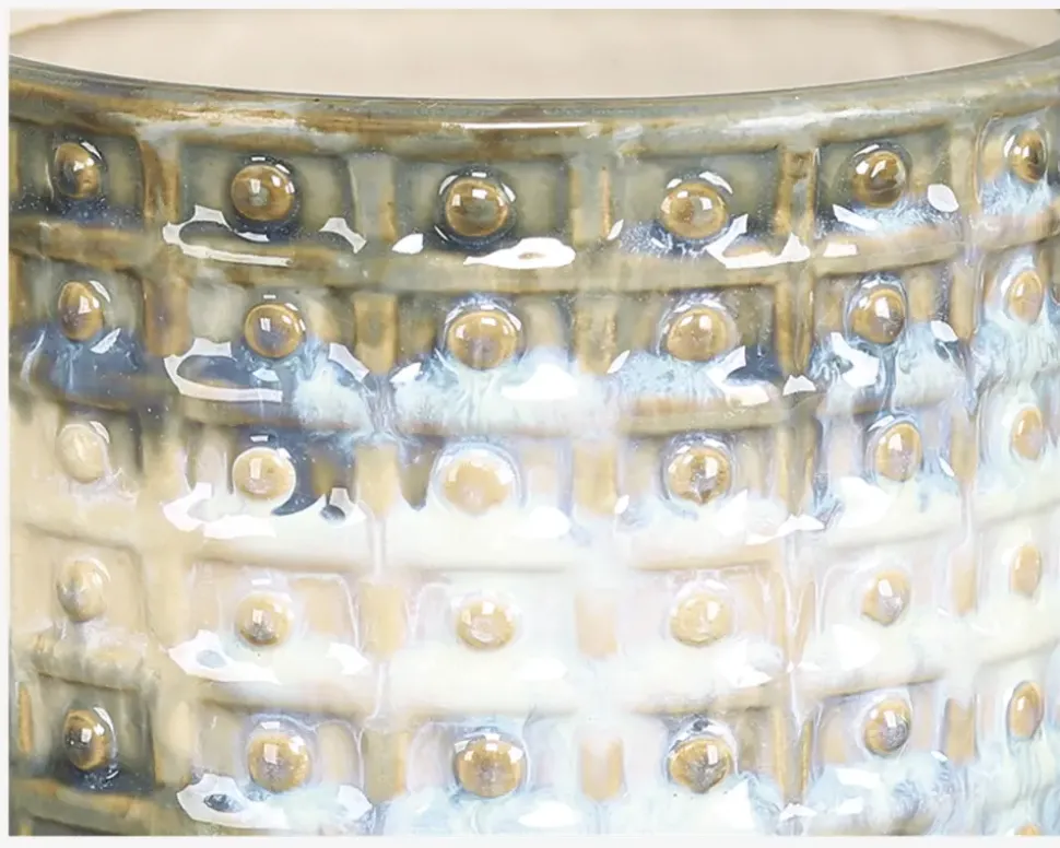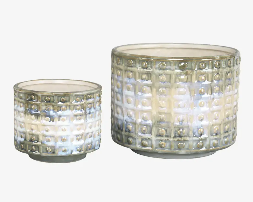 Urtepotter der er fremstillet med et flot mønster. Skjulerne giver med sin fine farvekombination, et hyggeligt og flot pust til indretningen. Skjuleren kommer i 2 størrelser, så der er god mulighed for at benytte dem, til forskellige blomster.• Mål i cm: Ø.21 & 17 cm• Farve: grøn• Materiale: keramik
