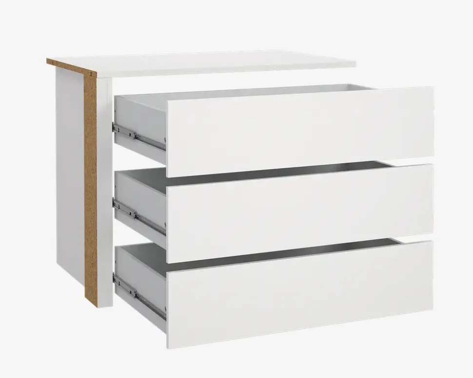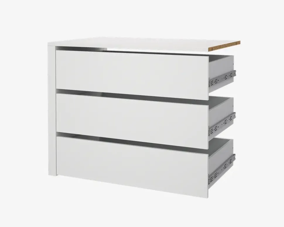 Hvis du ønsker at optimerer indretningen af dit Casa garderobeskab, er det muligt at tilkøbe denne indbygningsskuffeindsats. Skufferne kan bygges ind i begge sider af Casa skabet som måler 179 cm. i bredden, du skal blot beslutte hvilken side du ønsker at det skal sidde, før du begynder at samle det. Skuffe indsatsen indeholder 3 skuffer.Hver skuffe måler H. 12,7 x B. 77,4 x D. 43,6 cm, og må maks. belastes med 9 kg.