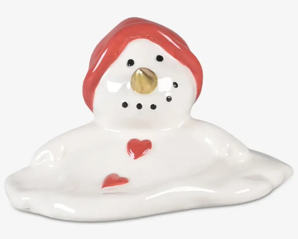 Dekorativ snemand i hvid med et smeltet udtryk, der giver et sjovt og anderledes twist til julepynten. Figuren har en højde på 5 cm og passer perfekt som en lille detalje på julebordet, i vindueskarmen eller som en del af en kreativ juleopstilling.