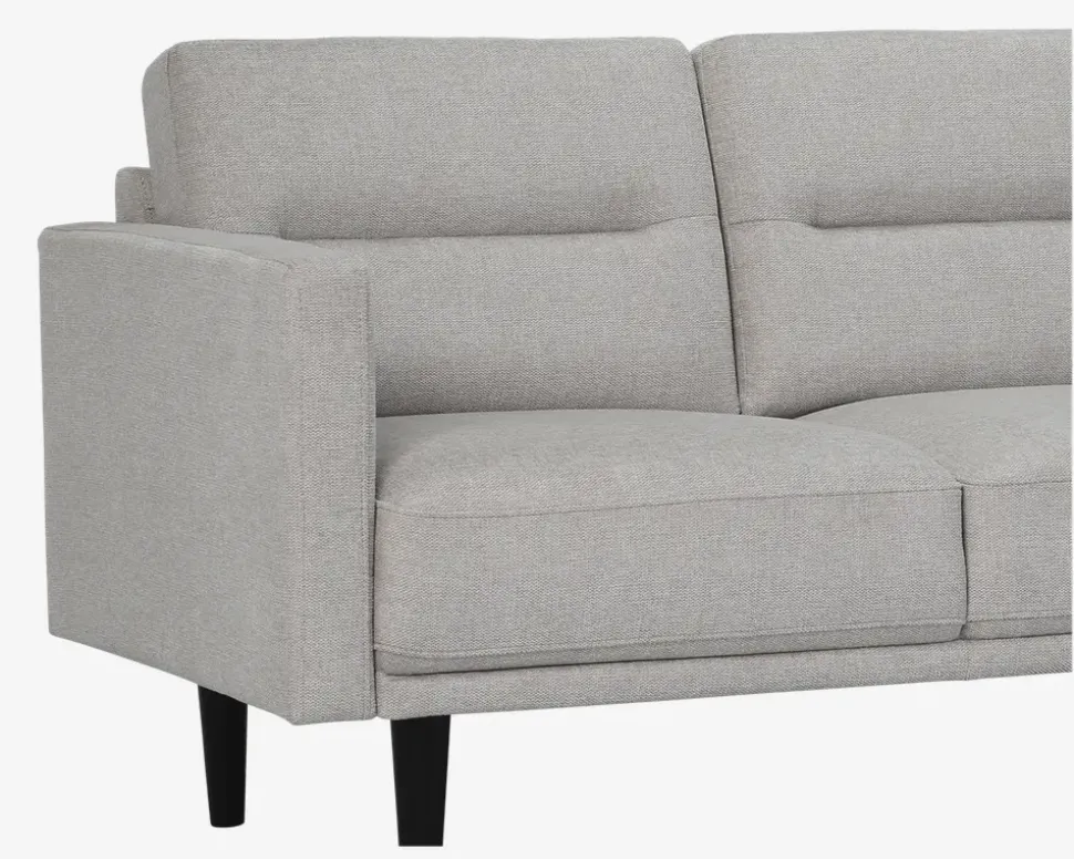 Let, elegant og moderne designet sofa. Sofaen er konstrueret med træramme hvor i der er nozagfjedre. De fastmonterede sædehynder er med et indlæg af posefjedre som er pakket ind i formstabilt polyether skum, svøbt med fibervat, hvilket giver en fantastisk siddekomfort og en lang holdbarhed. De løse ryghynder er med formstabilt polyether skum, så de altid holder sin form. Dette giver en yderst behagelig rygstøtte. Sofaen er monteret med meget slidstærkt og strukturvævet møbelstof, som også har en dejlig blød overflade. Sofaen har også meget elegante sortlakerede træben. Sofaen fås i 3 farver, blå, beige og antracit og fås både som 3 pers. og 2 pers så derfor er den også oplagt at købe som sofasæt. I samme farver fås også en flot lænestol inkl. fodskammel.• Let, elegant og moderne design• Rigtig dejlig siddekomfort• Slidstærkt og strukturvævet møbelstof.• Træramme med nozagfjedre• Sædehynder med posefjedre• Mål i cm. L.141 x D.86 x H.43/82