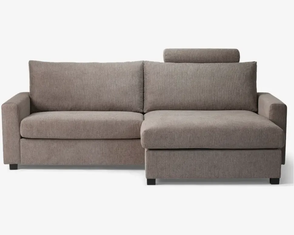 Denne flotte sofa med et enkelt og klassisk design, er med sin brede chaiselong og de brede armlæn, lige sofaen du har ventet på hvis ikke pladsen er uendelig. Sofaen er meget anvendelig i mindre lejligheder hvor der ikke lige er plads til kæmpesofaen. Her får du både en dejlig komfortabel og kompakt sofa, så du ikke behøver at gå på kompromis med hverken kvalitet, praktisk funktion eller udseende. Sofaen har højelastisk polyether skum i både sæde og ryg og det giver en god og behagelig siddekomfort. Sofaen er monteret med kraftigt og strukturvævet møbelstof. Chaiselong delen kan du placere enten til højre eller til venstre, helt som du ønsker og har behov for.Klik her for at se nakkepuden• Slidstærkt møbelstof• Højelastisk polyether skum i sæde og ryg• Behagelig siddekomfort• Enkelt og klassisk design• Mål i cm. L. 240 D. 90/150 H. 46/88