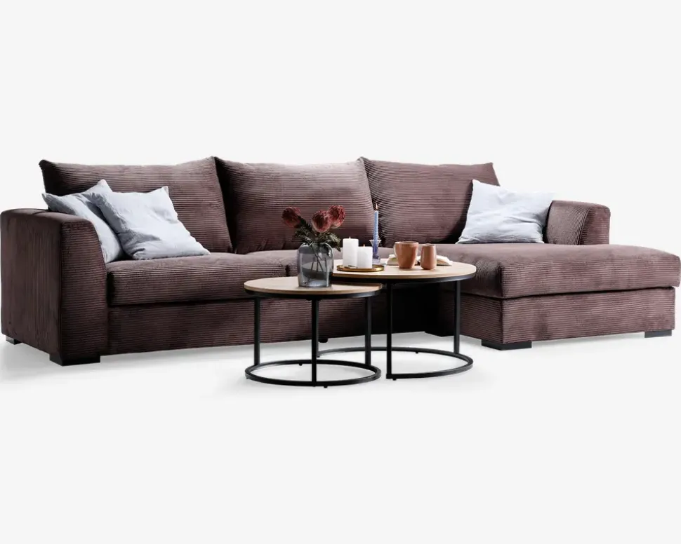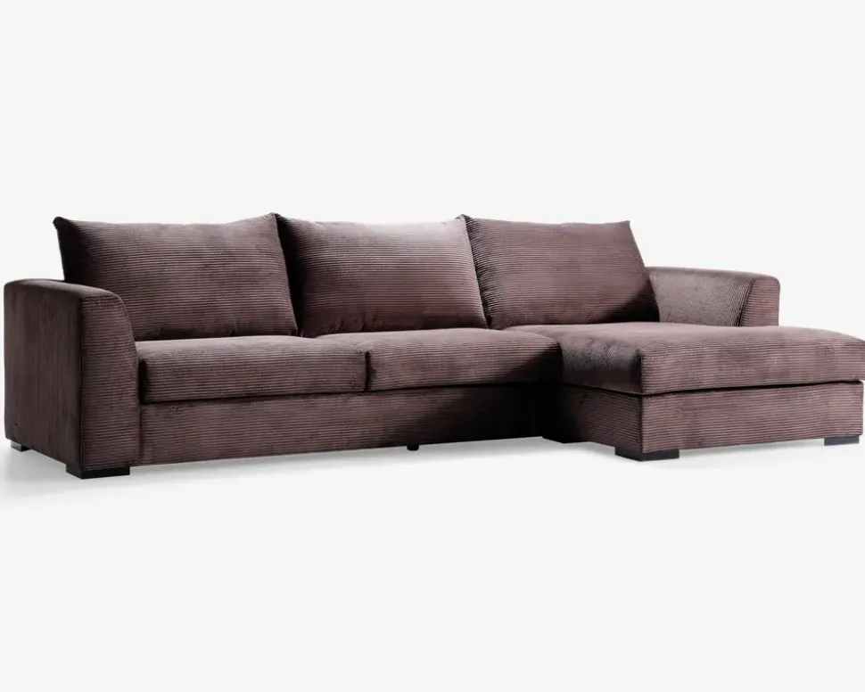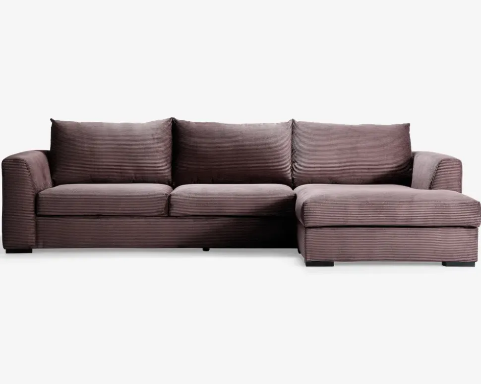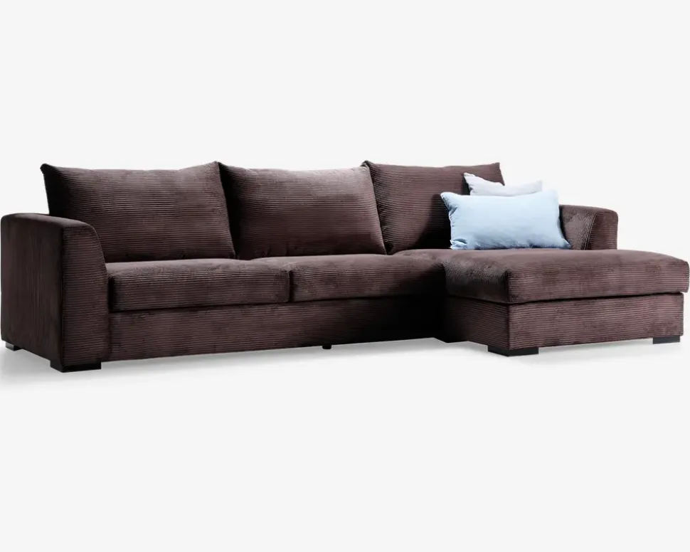 Sofa med chaiselong brun fløjl højre