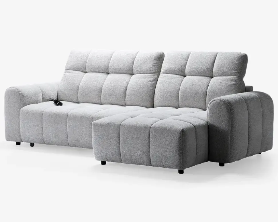 Denne lækre sofa er en rigtig flyder. Med sit elbetjente sæde der kan køres frem og tilbage får man en sofa der virkelig indbyder til hygge med et tæppe og en kop kaffe. Sofaen har en stor chaiselong på 90 cm og den er monteret med blødt og slidstærk møbelstof. I sædehynderne har sofaen en fast og formstabil polyetherskum som er understøttet af nozag fjedre. Dette giver en rigtig dejlig siddekomfort. Sofaen har ydermere justerbare nakkestøtter som er med til at give den gode siddekomfort. Sofaen her er højrevendt og kan også bestilles venstrevendt.• Blødt og lækkert møbelstof• Stor chaiselong på 90 cm• Fast og formstabilt polyether skum i sæde• Med justerbare nakkestøtter• Mål i cm: L. 264 x D. 159 x H.43/98