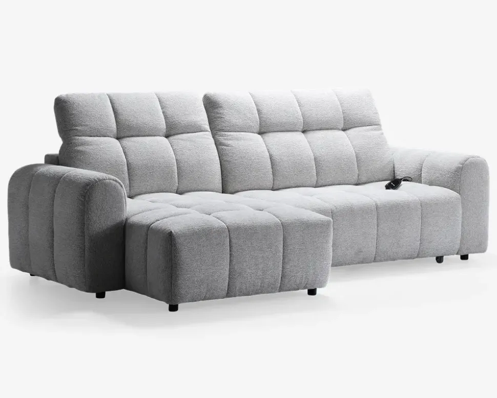 Denne lækre sofa er en rigtig flyder. Med sit elbetjente sæde der kan køres frem og tilbage får man en sofa der virkelig indbyder til hygge med et tæppe og en kop kaffe. Sofaen har en stor chaiselong på 90 cm og den er monteret med blødt og slidstærk møbelstof. I sædehynderne har sofaen en fast og formstabil polyetherskum som er understøttet af nozag fjedre. Dette giver en rigtig dejlig siddekomfort. Sofaen har ydermere justerbare nakkestøtter som er med til at give den gode siddekomfort. Sofaen her er venstrevendt og kan også bestilles højrevendt.• Blødt og lækkert møbelstof• Stor chaiselong på 90 cm• Fast og formstabilt polyether skum i sæde• Med justerbare nakkestøtter• Mål i cm: L. 264 x D. 159 x H.43/98