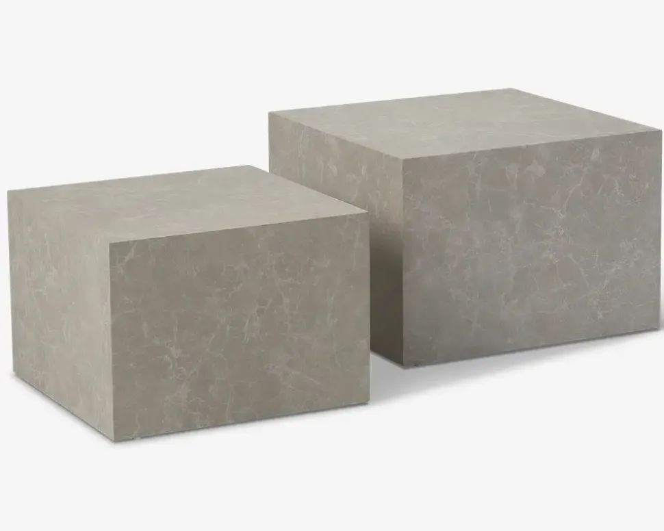 Super smart sofabord som nærmest er en lille skulptur i sig selv. Sofabordet består af 2 kuber som kan stilles helt som man ønsker for at skabe lige den opstilling der passer hos dig. Og opstillingen kan nemt ændres hvis der opstår andre behov. Sofabordet er fremstillet i træfiberplade med travertin marmor kunstfiner som overflade. Meget rengøringsvenligt. Man aftørre blot overfladen med en opvredet ren klud. Ellers er det helt vedligeholdelses frit. Bordet leveres samlet.• Skulpturelt design• Består af 2 kuber• Travertin marmor kunstfiner• Meget rengøringsvenligt• Helt vedligeholdelses frit• Leveres samlet.• Stor kube:Mål i cm. L.58 x B.58 x H.40• Lille kube: Mål i cm. L.50 B.50 x H.35