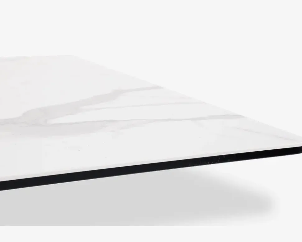 Elegant og moderne sofabord med glasplade som har en overflade som er lavet af keramik i hvid. Det har den fordel at bordet er meget modstandsdygtig overfor varme og væsker. Det er næsten umuligt at ridse og så kræver det ingen vedligeholdelse. Man tørrer blot bordet af med en opvredet klud. Og som en sidegevinst er det et naturprodukt som er 100% genanvendeligt. Bordet har et smart understel som er med til at give bordet det moderne udtryk. Stellet er sortlakeret metal. Der findes også et spisebord som har samme type bordplade og understel. Bordet leveres usamlet, men samles nemt.• Elegant og moderne sofabord• Glasplade med keramik overflade• Sortlakeret metalstel• Modstandsdygtig overfor varme og væsker• Leveres usamlet, men samles nemt• Mål i cm. L.130 x B.70 x H.45