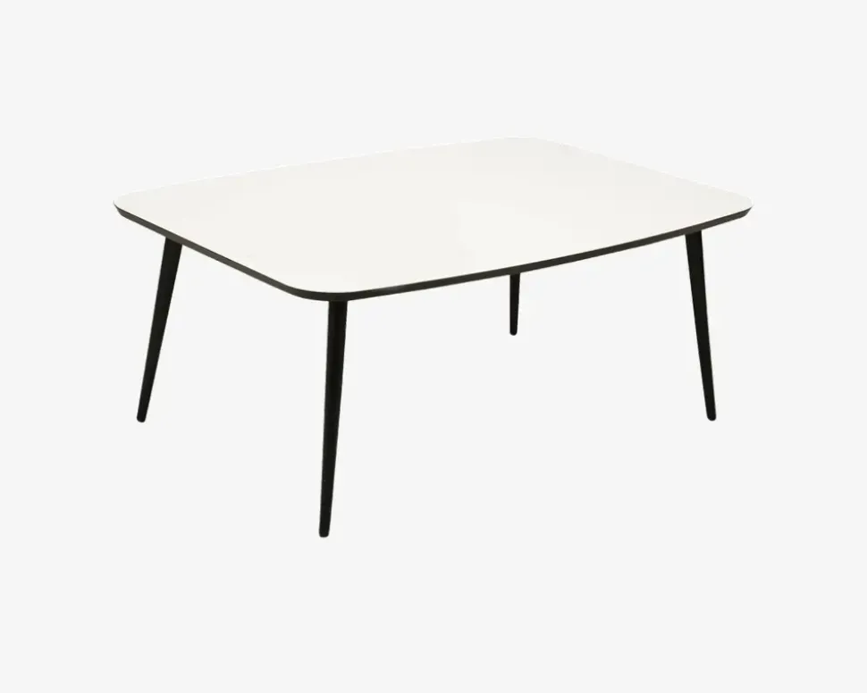Flot bord i moderne retro design. Sofabordet er fremstillet i MDF med en overflade i slag og ridsefast melamin med flotte facet kanter, der er lakeret. Benene er i massivt træ, der her er lakeret sort.• Moderne retro design• Melamin overflade• Slag og ridsefast• Nemt at vedligeholde• Leveres usamlet, men samles nemt• Mål i cm. L. 110 cm. B. 80 cm. H. 46 cm