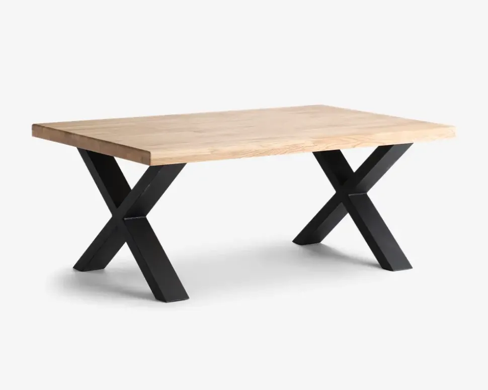 Flot og moderne sofabord som består af en bordplade med en 40mm rustik kant i massiv olieret eg, som giver bordet et gedigent udtryk og giver et flot pust til indretningen af det moderne hjem. Bordpladen er oliebehandlet og fremstår med sine 2 planker klassisk i både udførelse og design. Stellet er i sort pulverlakeret stål, som giver en stabil understøtning af bordpladen.Bordpladen er nem at holde, eg er en af de hårdeste træsorter og I vil opleve at den ikke er modtagelig i forhold til ridser og hakker. Skulle uheldet være ude, giver den massive bordplade mulighed for med fint sandpapir at udbedre eventuelle skader. Den daglige rengøring foretages med en klud vredet op i rent vand. 1 til 2 gange om året, bør bordet efterbehandles med almindelig egetræs olie, I skal følge vejledningen på den træolie i vælger at benytte, for at få det bedste resultat.• Flot og moderne sofabord• Massiv oliebehandlet eg• Sortlakeret metalstel• Leveres usamlet men samles nemt• Mål i cm: L.110 x B.70 x H.45