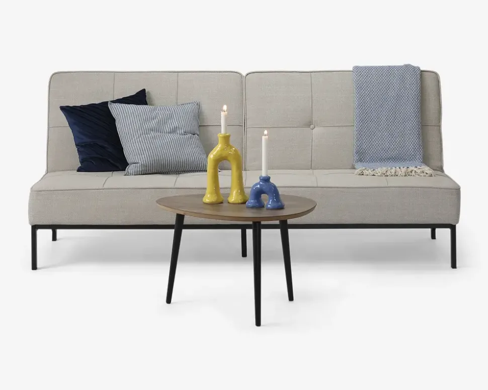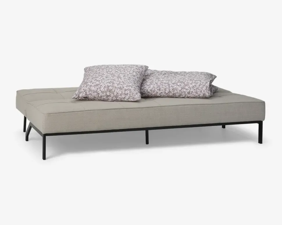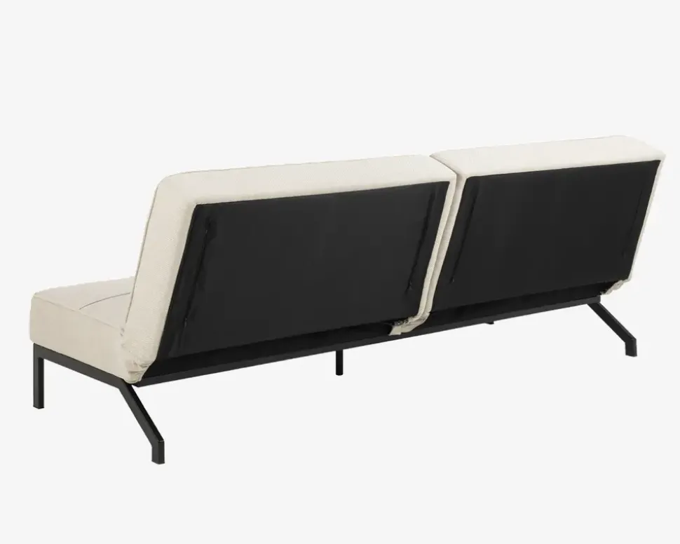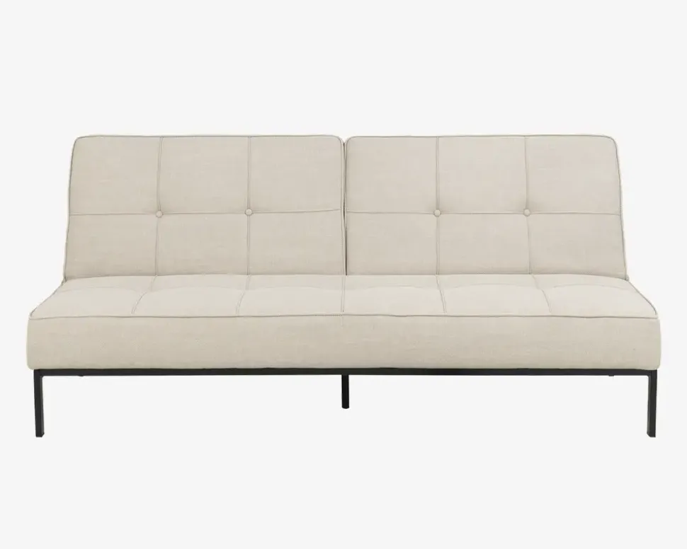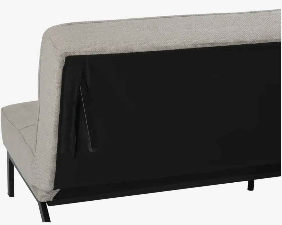 Lækker sovebriks i et smart design. Denne sovebriks er som skabt til et børne og ungdomsværelse, men kan bestemt også bruges i et gæsteværelse. Meget nem at betjene ved at ”klikke” ryggen tilbage og så har du en seng. Sæde og ryg er i formstabilt polyether skum med nozag fjedre under, som er med til at give en go sidde og også en god ligge komfort. Det anbefales altid at man ligger en rullemadras på sofaen når den skal bruges som seng. Sovebriksen er monteret med slidstærkt møbelstof som fås i farverne grå og beige. Med sortlakeret metalben. • Lækker sovebriks/sovesofa• Formstabilt polyetherskum• Med sortlakeret metalben• Fås i grå og beige• God sidde og liggekomfort• Sovemål i cm. 120×198• Mål i cm. L.198 x D.95 x H. 39/88