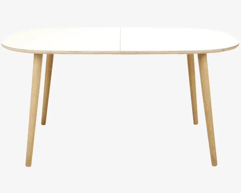Shape® er en bordserie, som Daells Bolighus har udviklet sammen med en af vores dygtige danske leverandører. Du kan selv sammensætte dit bord som du ønsker, og kan vælge bordplader med udtræk, til spiseborde i forskellige størrelser og træsorter, derudover kan du selv vælge om du ønsker træben eller stålben. Bordserien findes desuden også med bordplader uden udtræk som er velegnet som sofabord, idet du også kan vælge benene i sofabordshøjde.Hele serien er dansk produceret i en meget flot kvalitet, og i høj håndværksmæssig kvalitet. Serien fremstår moderne og tidsløs i designet, og uanset om du vælger bordpladen i massiv træ, eller i laminat kan du til købe ekstra tillægsplader. Alle spisebordsplader leveres som standard med udtræk til 2 ekstra tillægsplader, men hvis du har god plads, eller behov for mange spisende gæster, kan der til begge de ovale bordplader tilkøbes et udtræk, som giver mulighed for op til 4 tillægsplader i bordet. Hvis du vælger denne løsning skal du dog være opmærksom på at magasin funktionen går tabt, og tillægspladerne skal opbevares seperat.Dette Shape® spisebord er fremstillet med en bordplade i hvid laminat med kanter i krydsfiner, og massive koniske ben i massiv eg. Bordet måler B.102 x L.150 cm og leveres med et udtræk så du har mulighed for at udvide bordet med 2 tillægsplader, så du kan få et bord der måler B.102 x L.240 cm og giver plads til 8-10 spisende personer. Tillægspladerne kan opbevares i et magasin i bordet, når ikke de benyttes. Laminat bordpladen giver dig en virkelig holdbar og stærk overflade, den er nem at renholde, idet laminat tåler alle former for rengøringsmidler, så længe de ikke indeholder slibemidler. Du har mulighed for at tilkøbe et udtræk som giver dig mulighed for at udvide bordet med endnu 2 tillægsplader, så du kan få et bord der måler B.102 x L.330 cm og giver plads til 12-14 spisende personer. Hvis du vælger denne løsning skal du dog være opmærksom på at magasin funktionen går tabt, og tillægspladerne skal opbevares seperat.• Udtræk til 2 tillægsplader• Ekstra tillægsplader varenr. 86363• Mål i cm: H.73 x B.102 x L.150• Leveres usamlet
