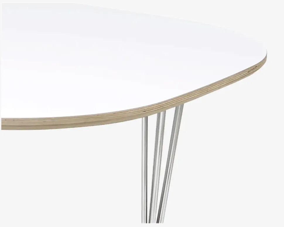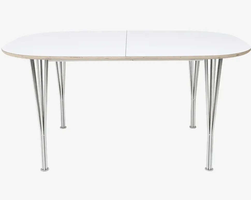 Shape® er en bordserie, som Daells Bolighus har udviklet sammen med en af vores dygtige danske leverandører. Du kan selv sammensætte dit bord som du ønsker, og kan vælge bordplader med udtræk, til spiseborde i forskellige størrelser og træsorter, derudover kan du selv vælge om du ønsker træben eller stålben. Bordserien findes desuden også med bordplader uden udtræk som er velegnet som sofabord, idet du også kan vælge benene i sofabordshøjde.Hele serien er dansk produceret i en meget flot kvalitet, og i høj håndværksmæssig kvalitet. Serien fremstår moderne og tidsløs i designet, og uanset om du vælger bordpladen i massiv træ, eller i laminat kan du til købe ekstra tillægsplader. Alle spisebordsplader leveres som standard med udtræk til 2 ekstra tillægsplader, men hvis du har god plads, eller behov for mange spisende gæster, kan der til begge de ovale bordplader tilkøbes et udtræk, som giver mulighed for op til 4 tillægsplader i bordet. Hvis du vælger denne løsning skal du dog være opmærksom på at magasin funktionen går tabt, og tillægspladerne skal opbevares seperat.Dette Shape® spisebord er fremstillet med en bordplade i hvid laminat, med en krydsfiner kant, og 6-trådsben i krom. Bordet måler B.102 x L.150 cm og leveres med et udtræk så du har mulighed for at udvide bordet med 2 tillægsplader, så du kan få et bord der måler B.102 x L.240 cm og giver plads til 8-10 spisende personer. Tillægspladerne kan opbevares i et magasin i bordet, når ikke de benyttes. Laminat bordplade giver dig en hårdfør overflade, som er nem at holde og rengøre, og derudover ikke kræver nogen form for vedligeholdelse, krydsfiner kanten giver dig mulighed for både at benytte et ben i krom, men du vil også kunne benytte benene i enten massiv bøg eller massiv eg, hvis det passer bedre ind i den øvrige indretning af hjemmet.. Du kan til bordet tilkøbe et udtræk som giver dig mulighed for at udvide bordet med endnu 2 tillægsplader, så du kan få et bord der måler B.102 x L.330 cm og giver plads til 12-14 spisende personer. Hvis du vælger denne løsning skal du dog være opmærksom på at magasin funktionen går tabt, og tillægspladerne skal opbevares seperat.• Bordben i krom• Ekstra tillægsplader varenr. 86363• Mål i cm: H.73 x B.102 x L.150• Leveres usamlet