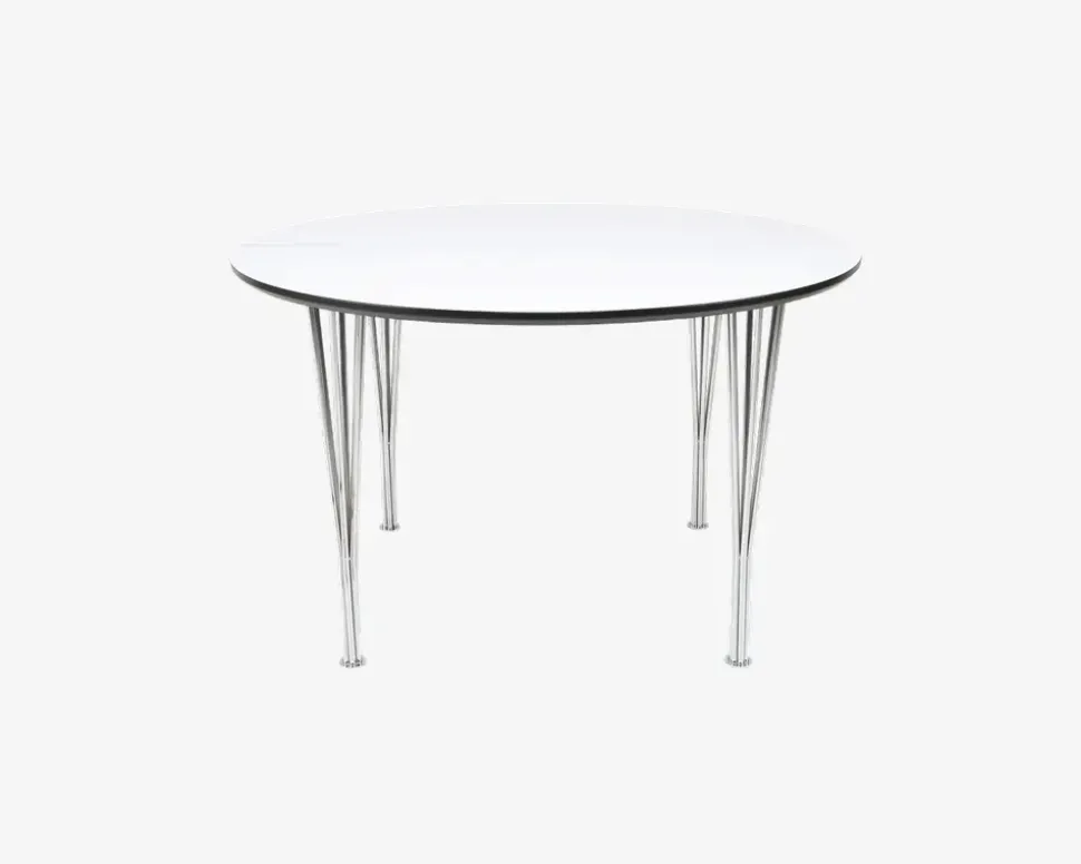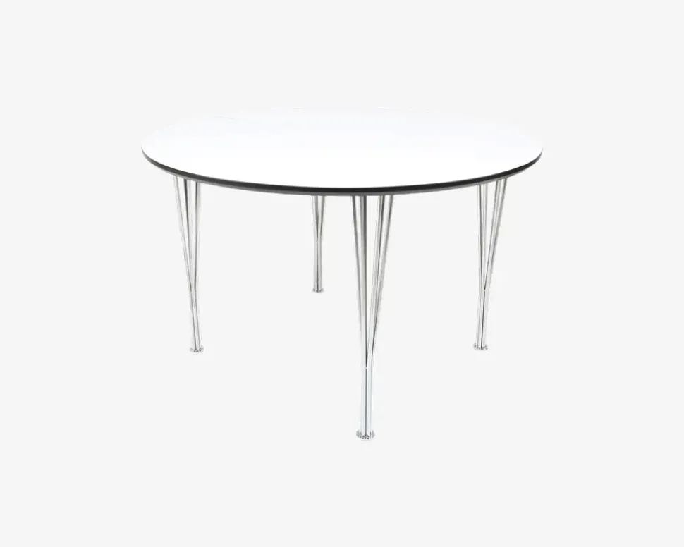 Shape® er en bordserie, som Daells Bolighus har udviklet sammen med en af vores dygtige danske leverandører. Du kan selv sammensætte dit bord som du ønsker, og kan vælge bordplader med udtræk, til spiseborde i forskellige størrelser og træsorter, derudover kan du selv vælge om du ønsker træben eller stålben. Bordserien findes desuden også med bordplader uden udtræk som er velegnet som sofabord, idet du også kan vælge benene i sofabordshøjde.Hele serien er dansk produceret i en meget flot kvalitet, og i høj håndværksmæssig kvalitet. Serien fremstår moderne og tidsløs i designet, og uanset om du vælger bordpladen i massiv træ, eller i laminat kan du til købe ekstra tillægsplader. Alle spisebordsplader leveres som standard med udtræk til 2 ekstra tillægsplader.Dette Shape® spisebord er fremstillet med en bordplade i hvid laminat med sortlakeret kant, og 6 trådsben i krom. Bordet måler Ø.120 cm og leveres med et udtræk så du har mulighed for at udvide bordet med 2 tillægsplader, så du kan få et bord der måler B.120 x L.210 cm og giver plads til 10-12 spisende personer. Laminat bordpladen giver dig en virkelig holdbar og stærk overflade, den er nem at renholde, i det laminat tåler alle former for rengøringsmidler, så længe de ikke indeholder slibemidler.• Bordben i krom• Ekstra tillægsplader varenr. 86367• Mål i cm: H.73 x Ø120• Leveres usamlet